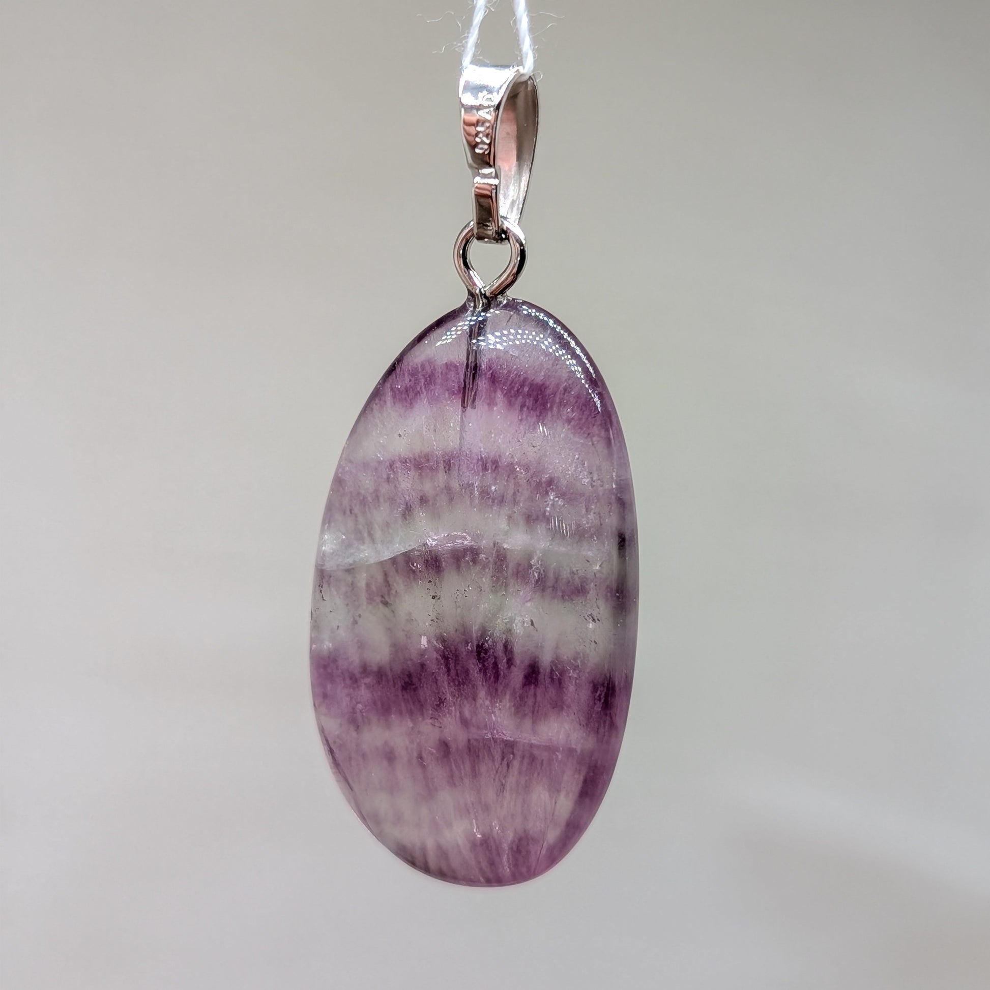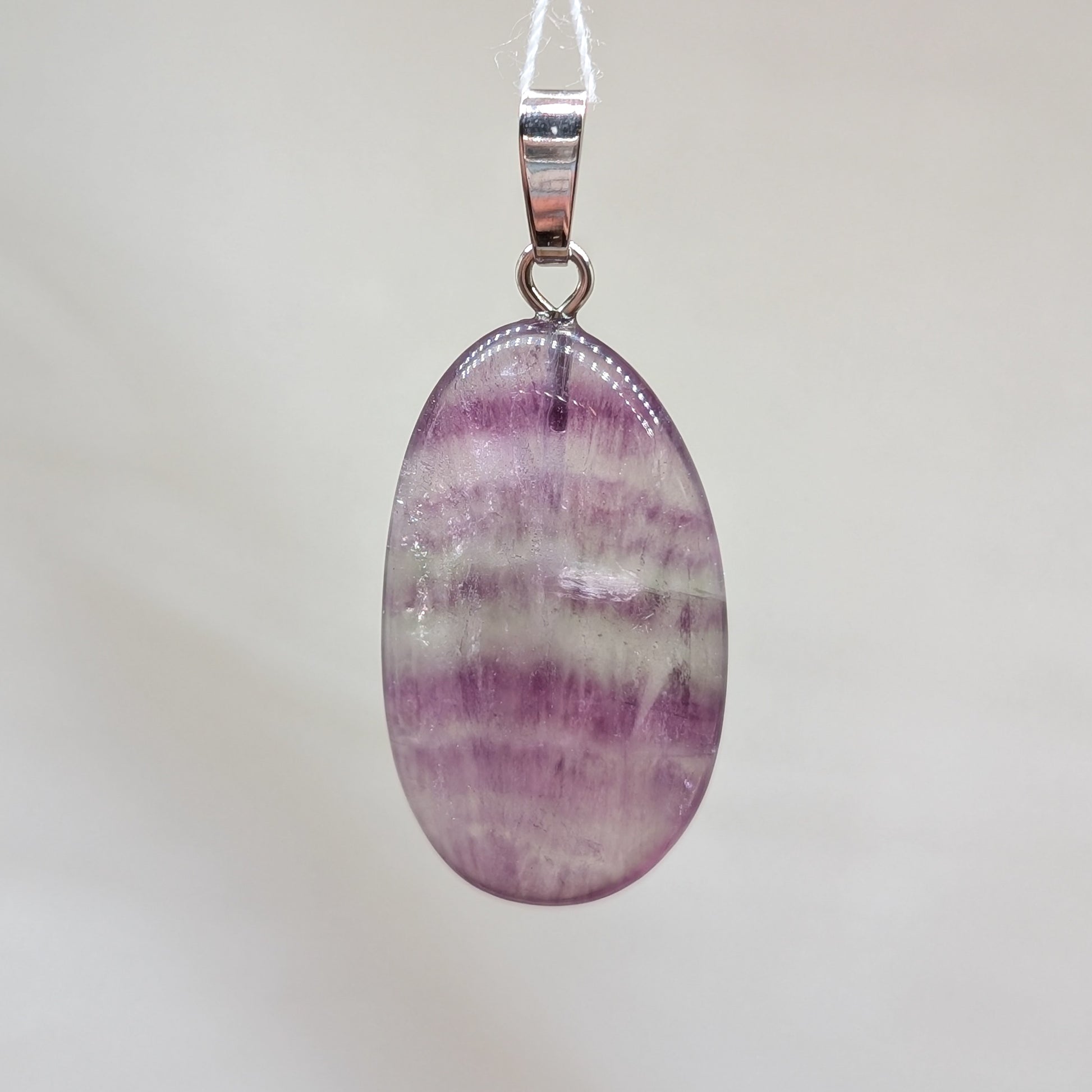 Fluorit Kettenanhänger mit Öse aus 925er Silber in mit schönen Banding in grün und lila in ovaler Form