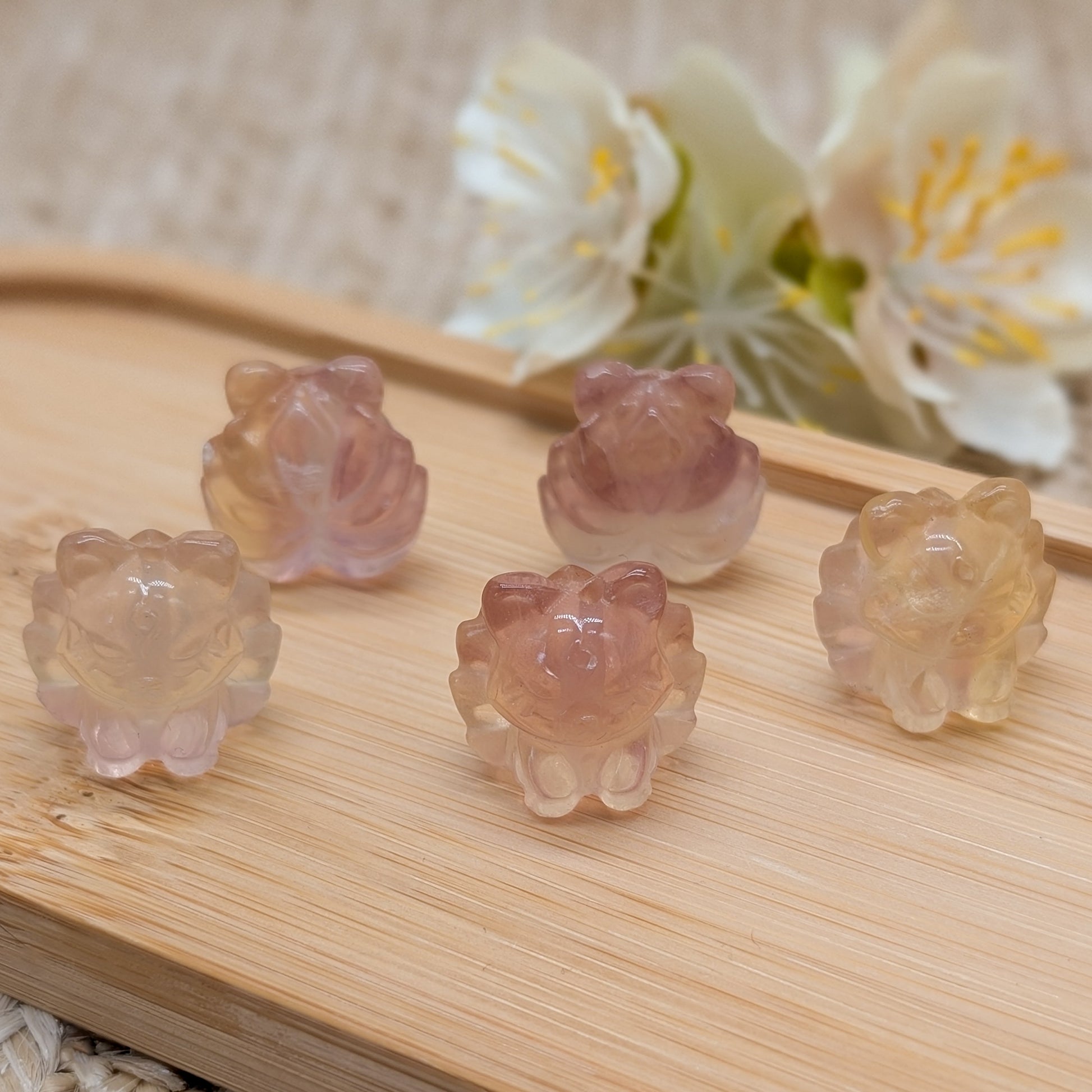 Natürliche Edelstein Perle in 9-schwänziger-Fuchsform aus Fluorit. 🦊