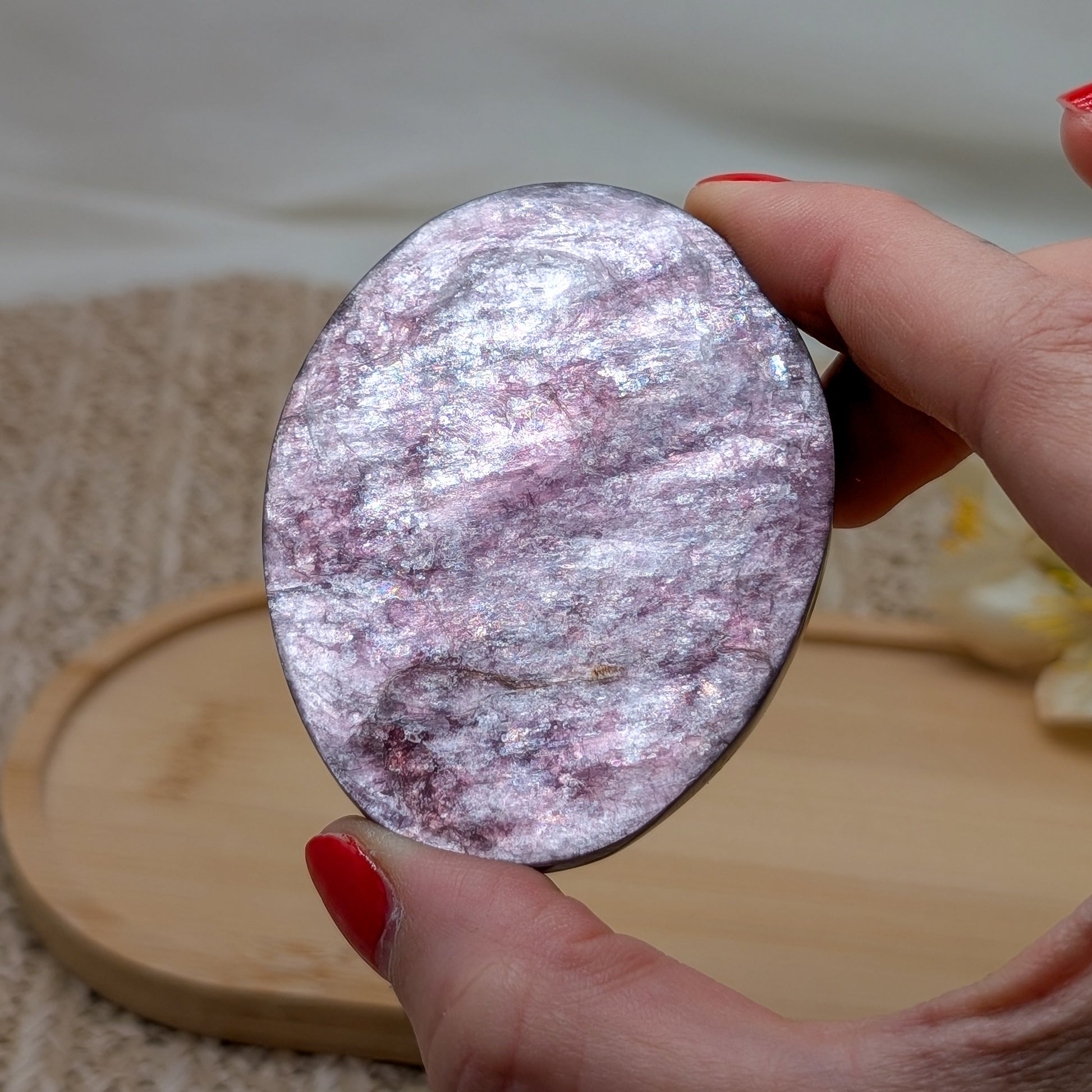 Gem Lepidolite ist eine Variation des Minerals Lepidolith, das in Schmuckstücken und als Edelstein verwendet wird. Lepidolith ist ein lithiumhaltiges Glimmermineral, das in verschiedenen Farben vorkommt. Gem Lepidolite zeichnet sich vor allem durch die charakteristischen Glimmereffekte, den "Flash", aus.