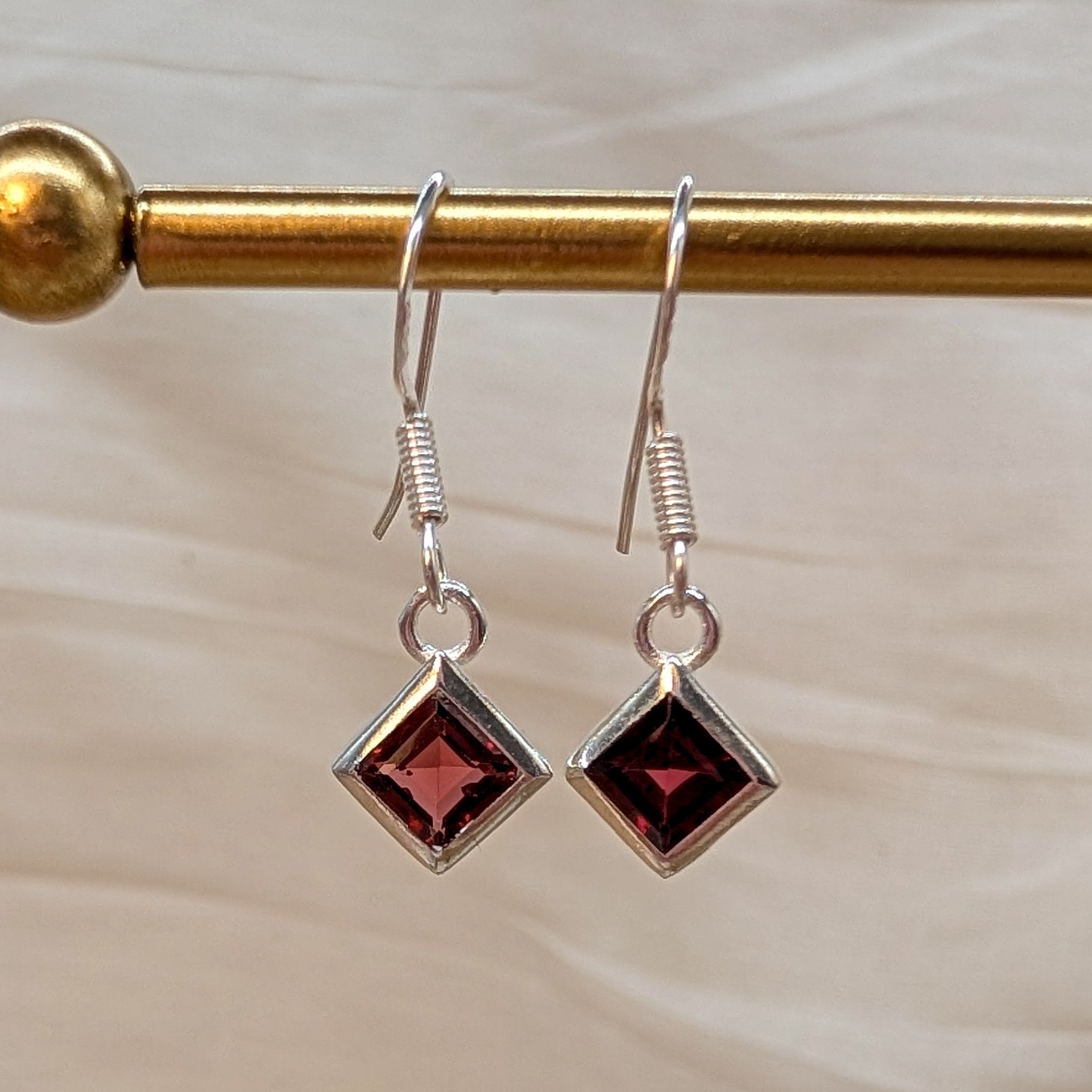 Granat Ohrhänger / Ohrringe in Rautenform aus 925er Echtsilber mit facettiert geschliffenem Granat