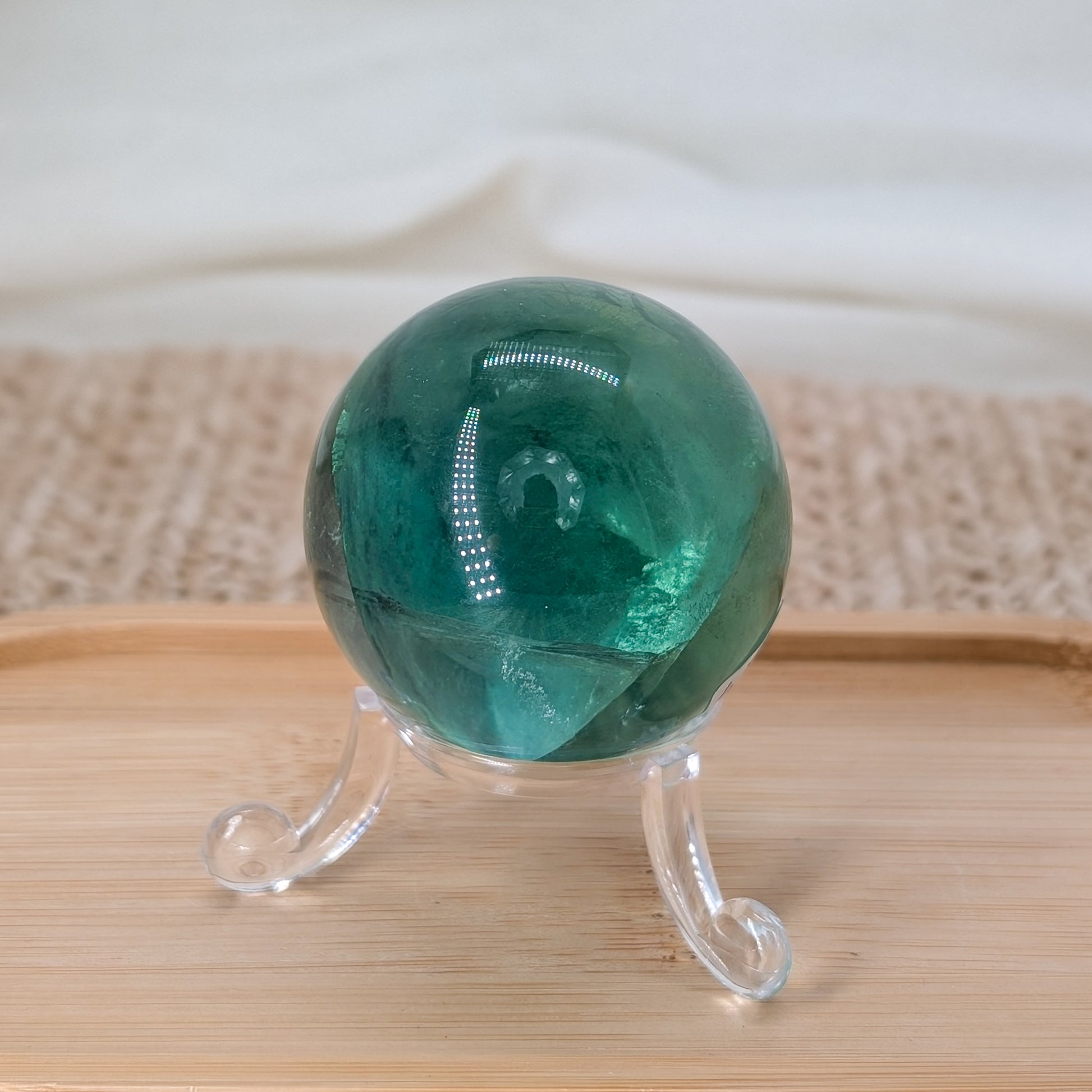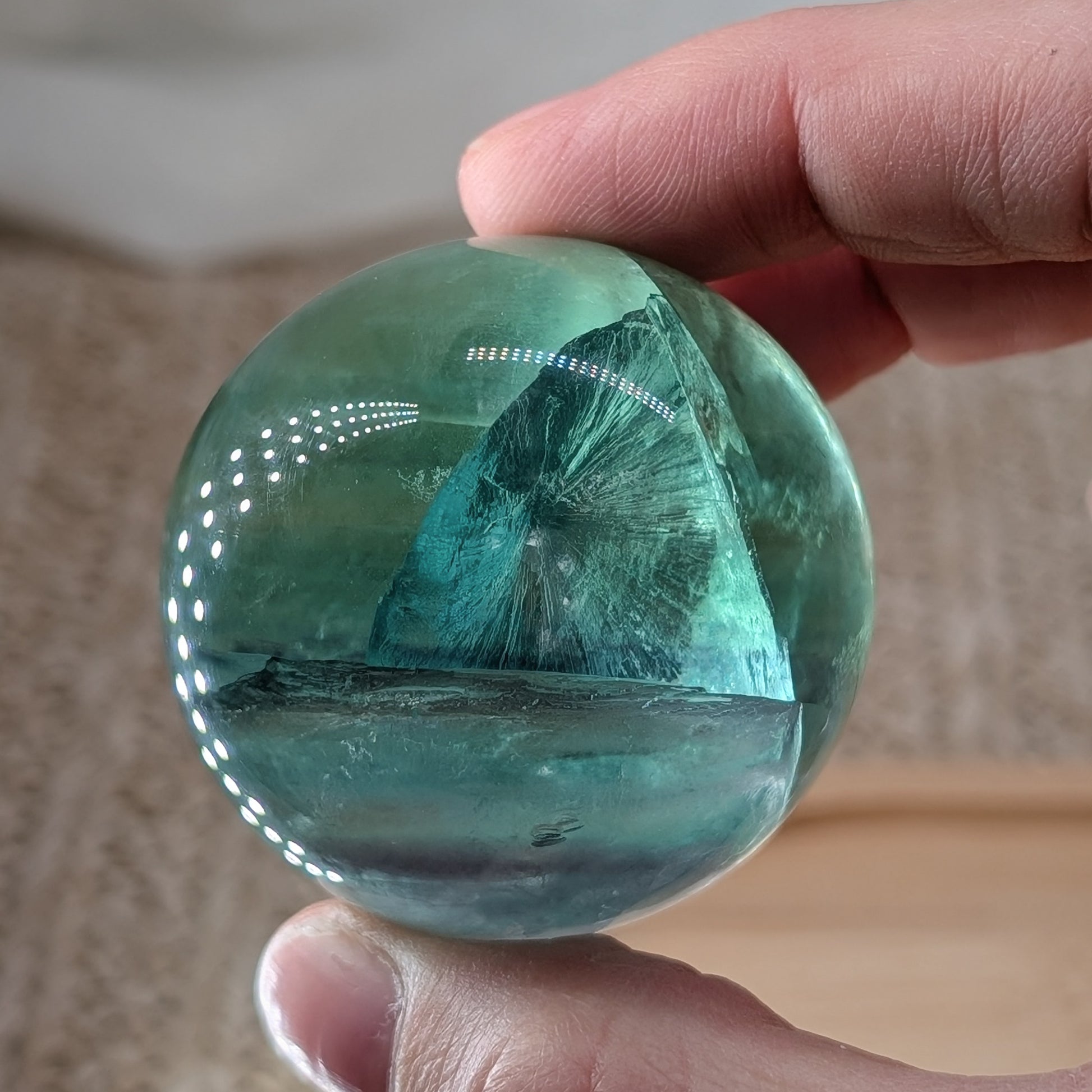 Strahlend grüne Fluorit Kugel mit großem Regenbogen 🌈