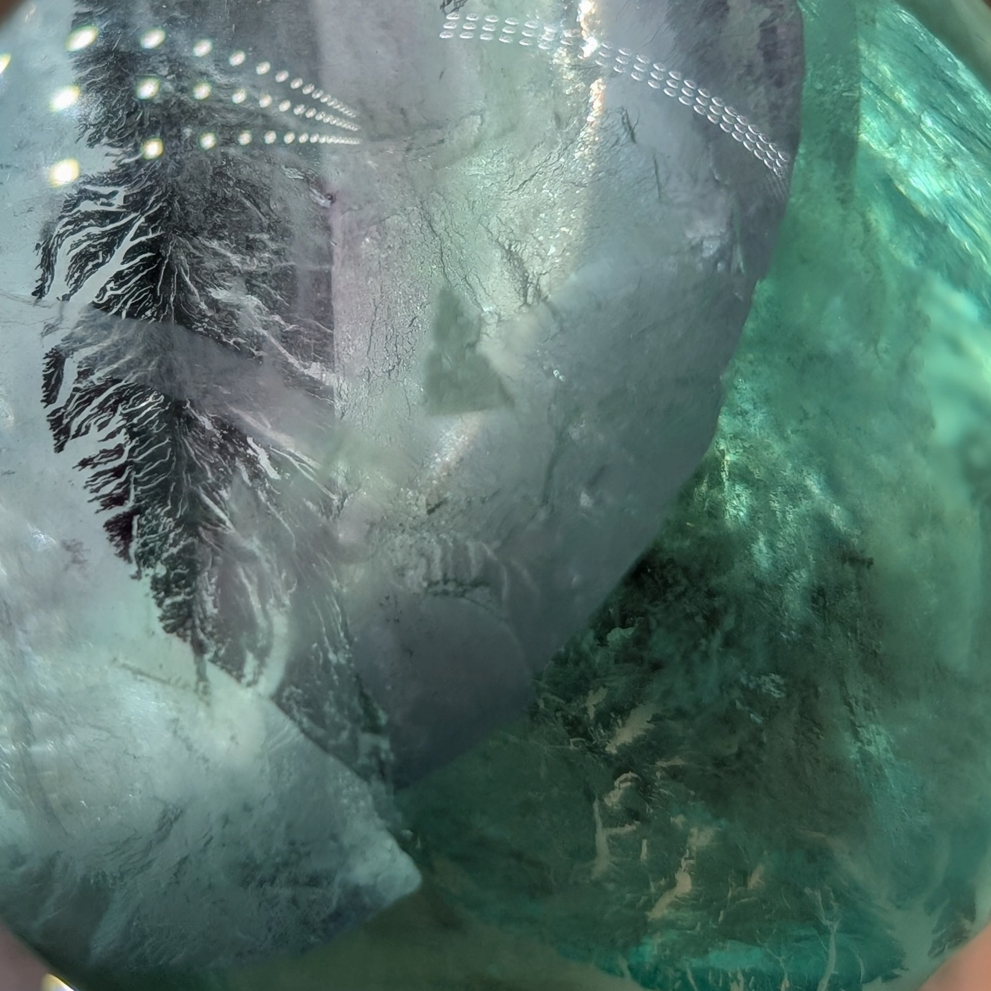 Fluorit kommt in ganz unterschiedlichen Farben vor. Die Farbe des Fluorits variiert je nach dem Gehalt an anderen Mineralien, die während seiner Bildung vorhanden waren. Grüner Fluorit entsteht z.B. durch Beimengungen von Eisen, violetter Fluorit durch Spuren von Mangan. Wie der Name sagt, ist Fluorit oft fluoreszierend, was bedeutet dass er unter UV-Licht leuchtet. Diese Fluoreszenz kann die Energie des Steins verstärken.
