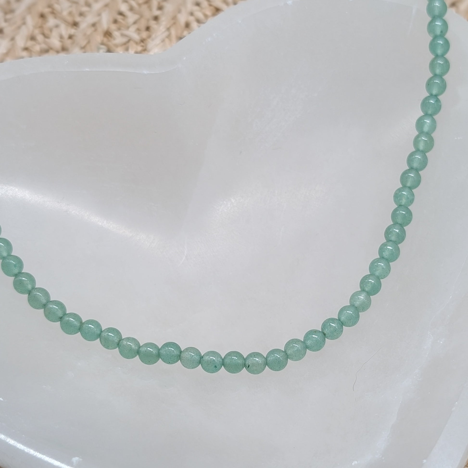 Grüner Aventurin Halskette mit Perlen und Edelstahl Verschluss.