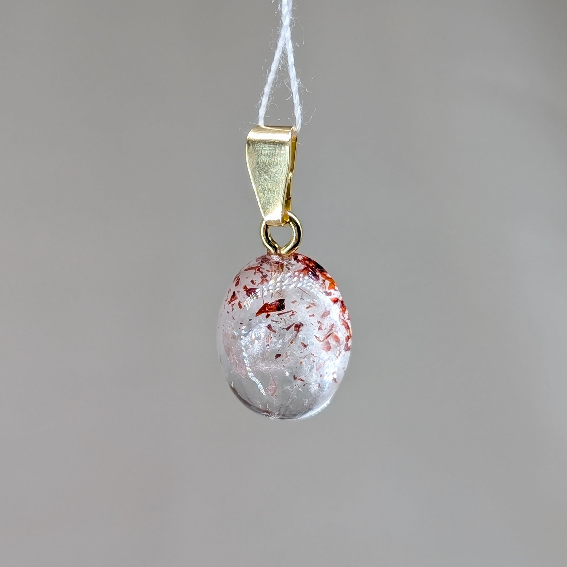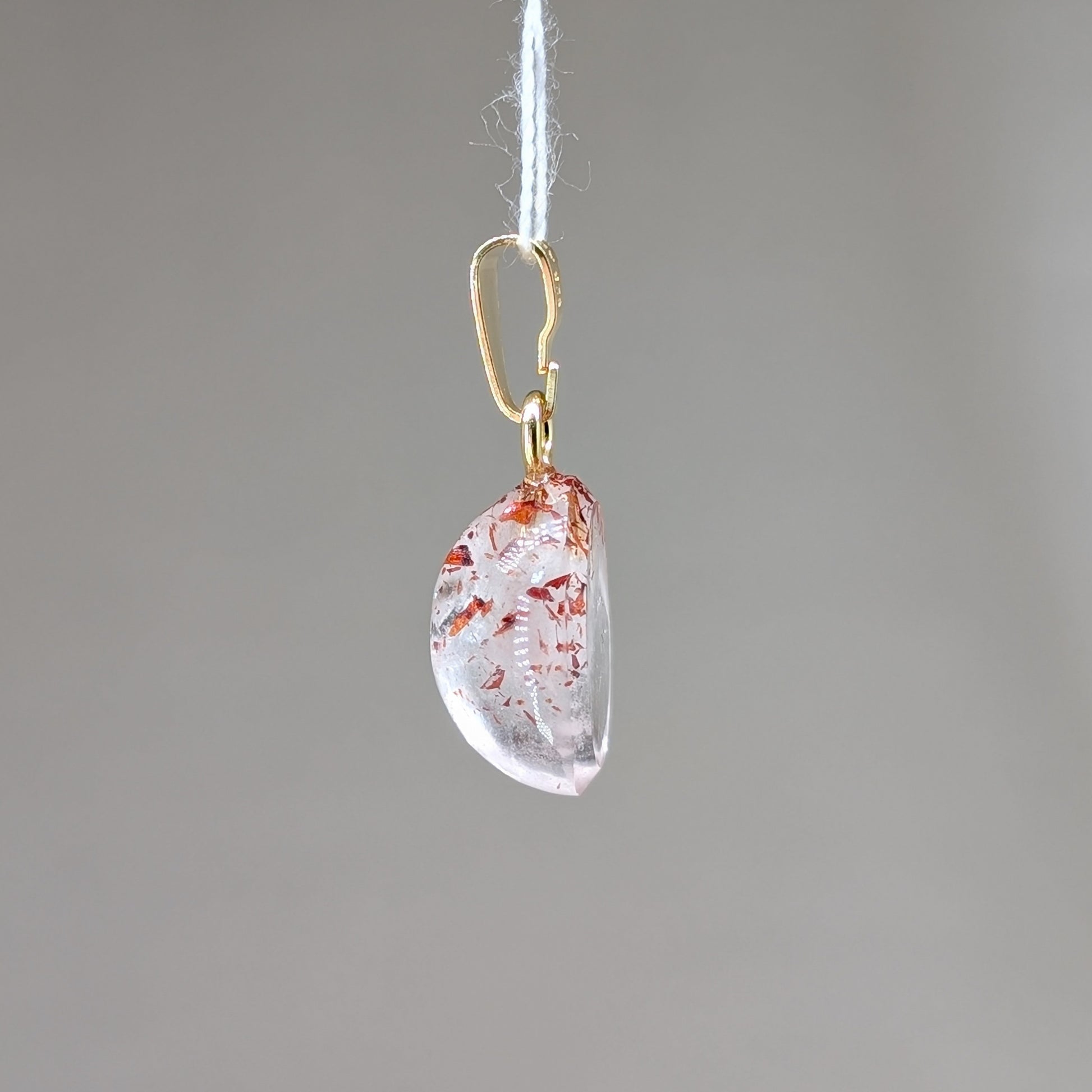 Hämatitquarz Kettenanhänger in transparenter Qualität mit roten Hämatit Einschlüssen mit Öse aus vergoldetem 925er Silber
