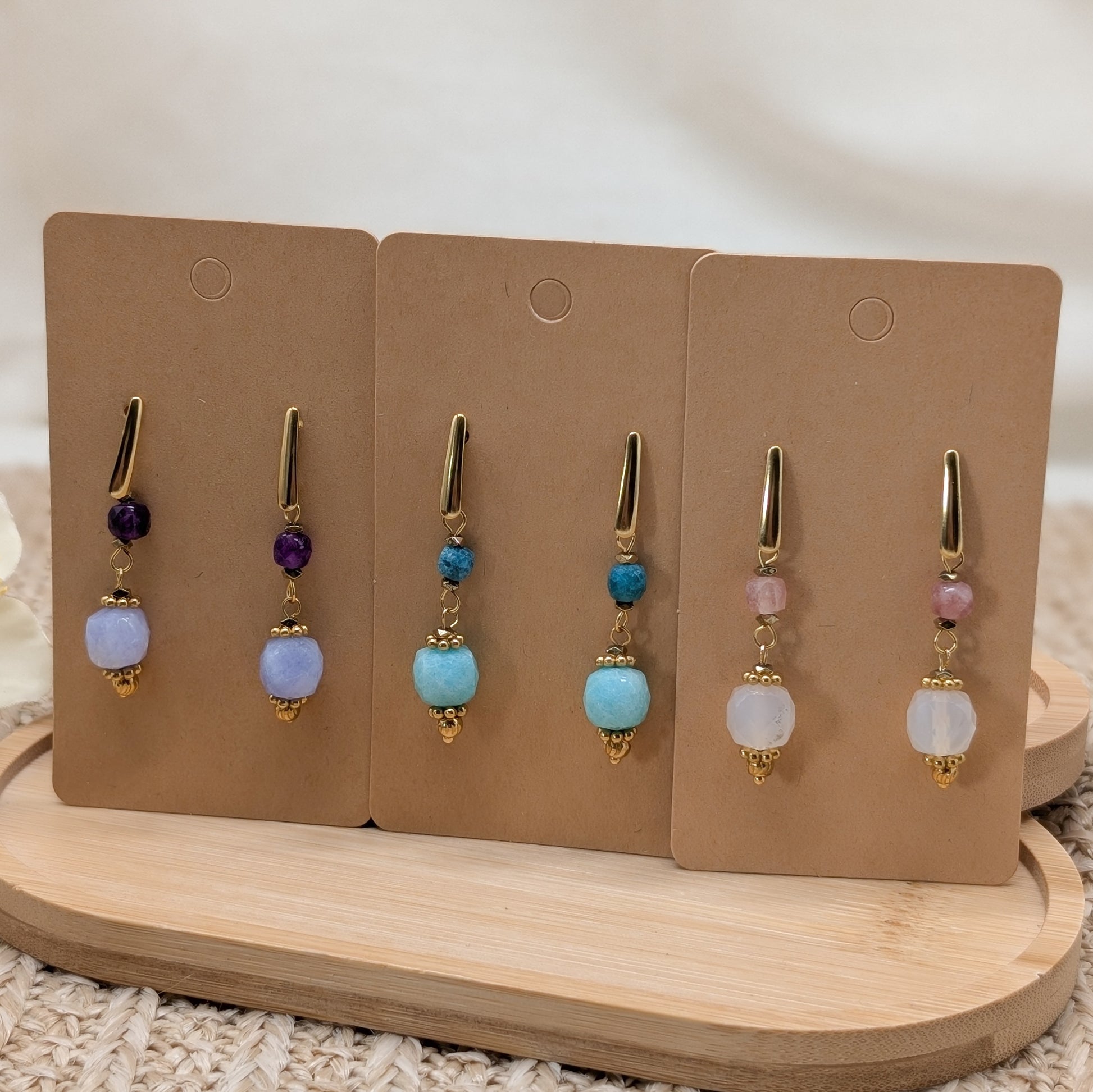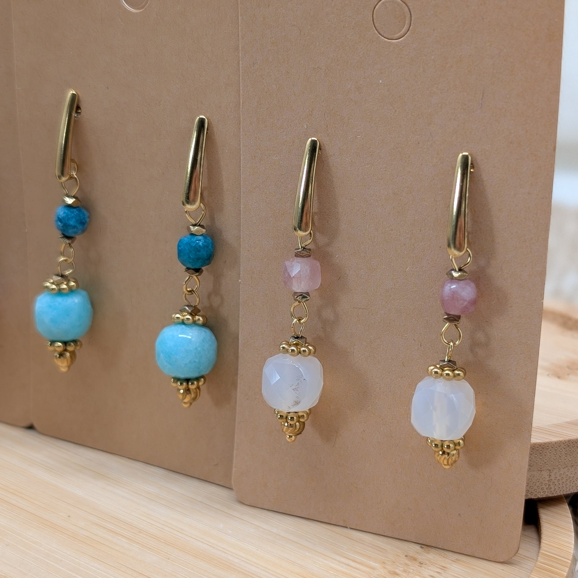 Ohrstecker hängend mit facettierten Edelsteinperlen in drei Varianten: