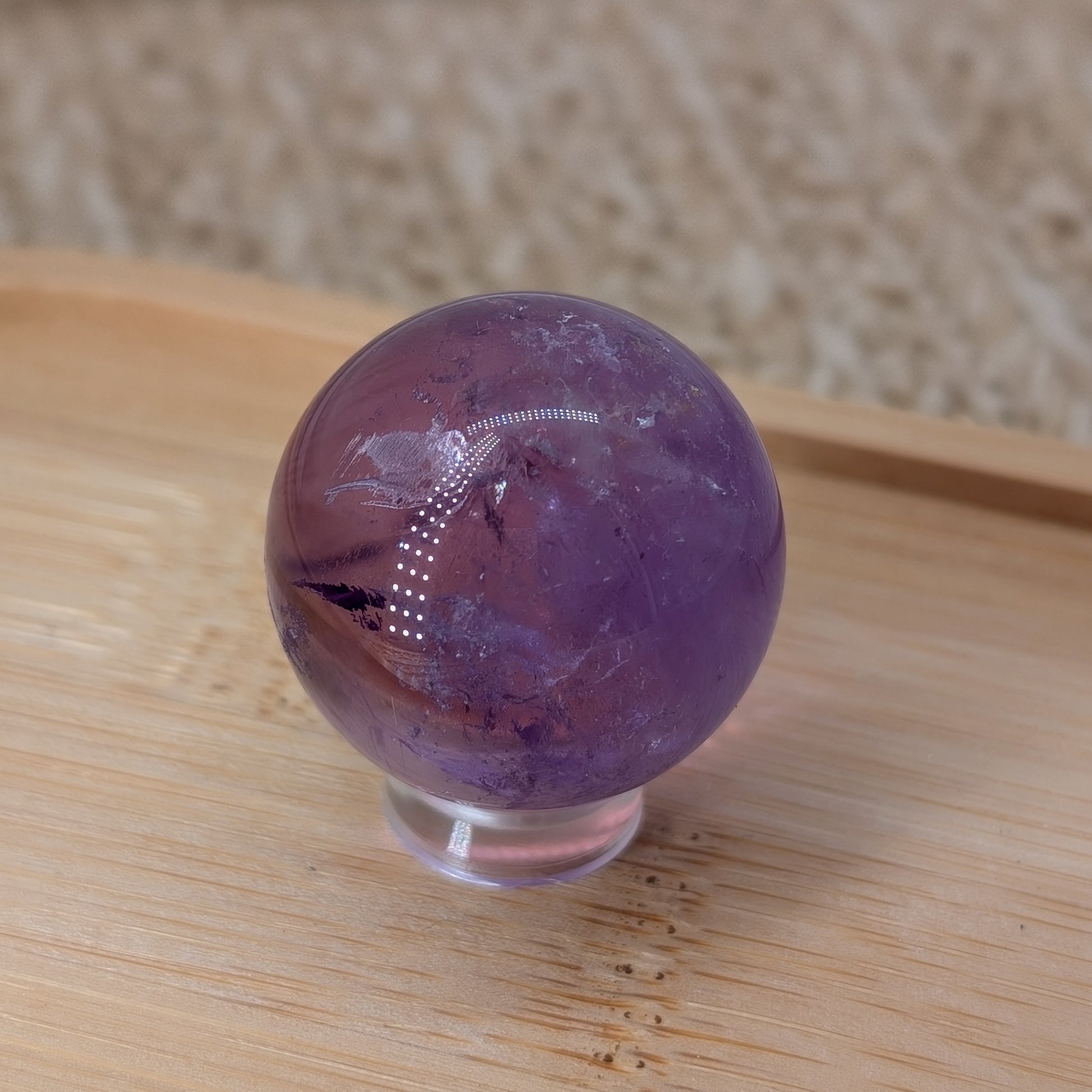 Transparente Amethyst Kugel in hellem Lila mit kleinem Regenbogen