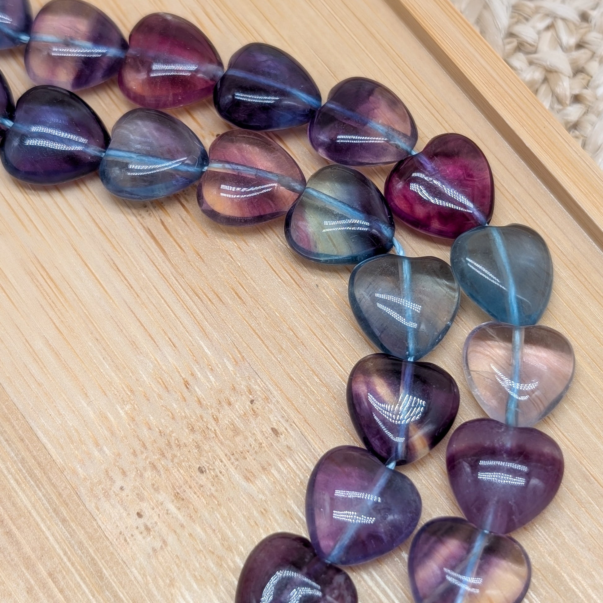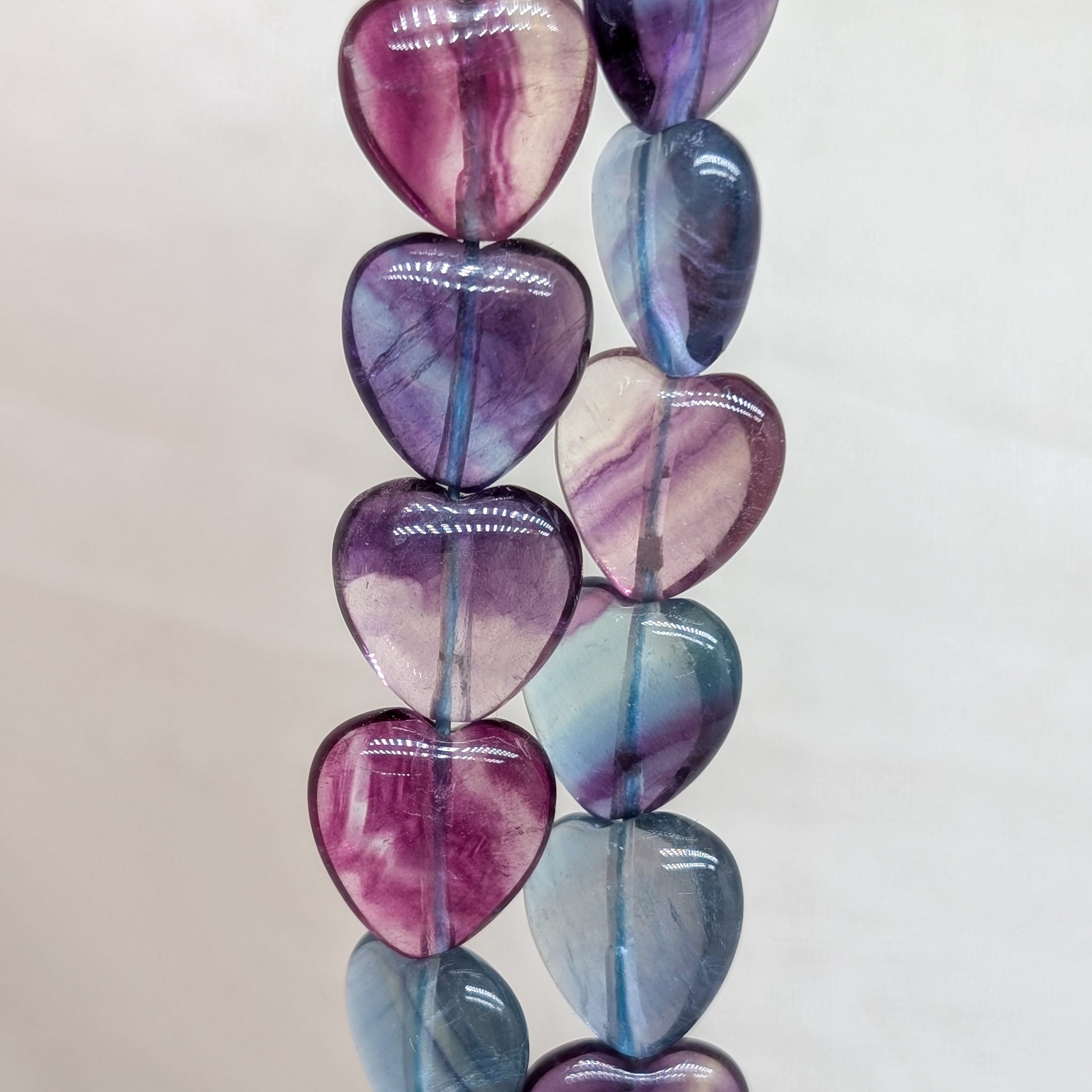 Natürliche Edelstein Perle in Herzform aus Fluorit mit schöner Musterung 💜💚💙.