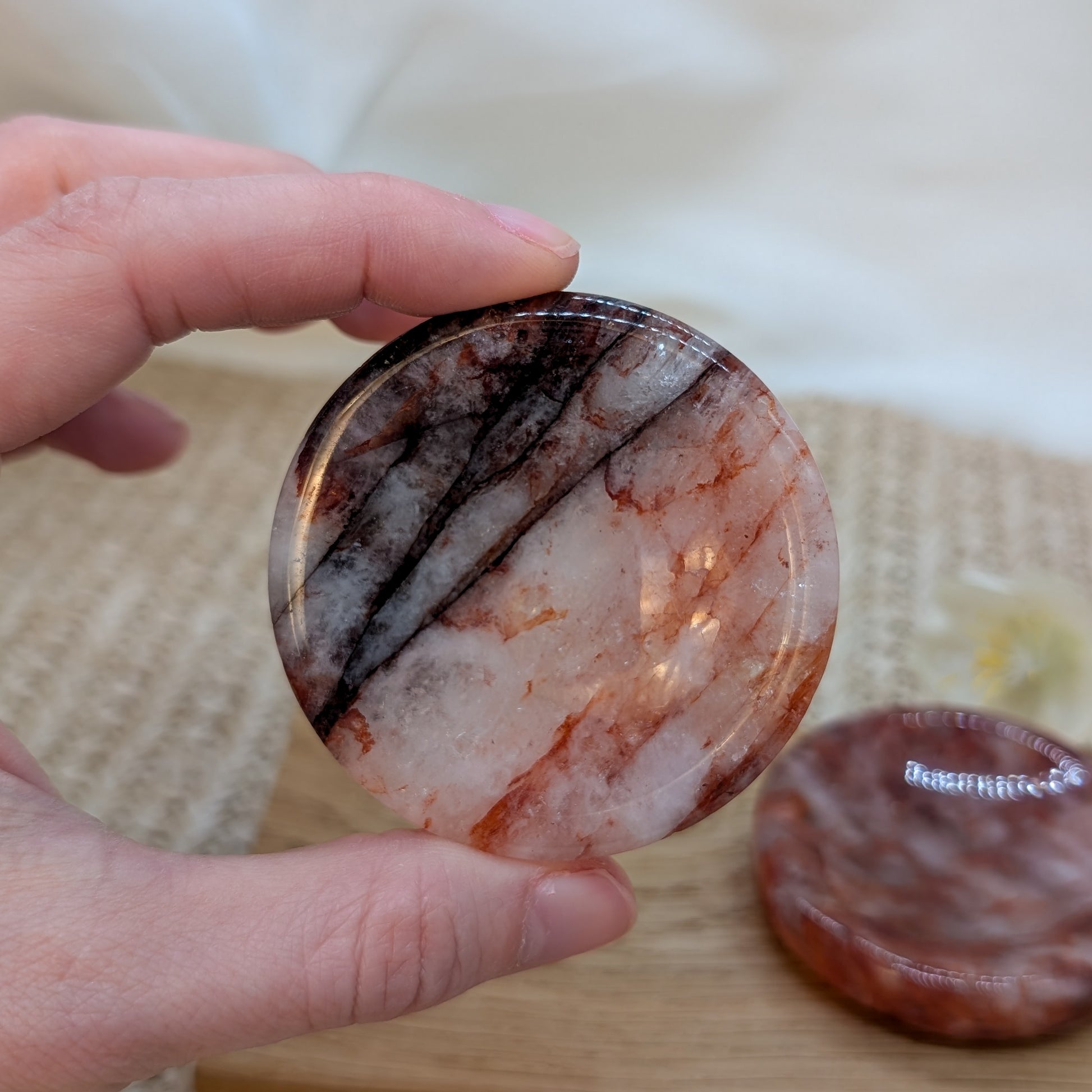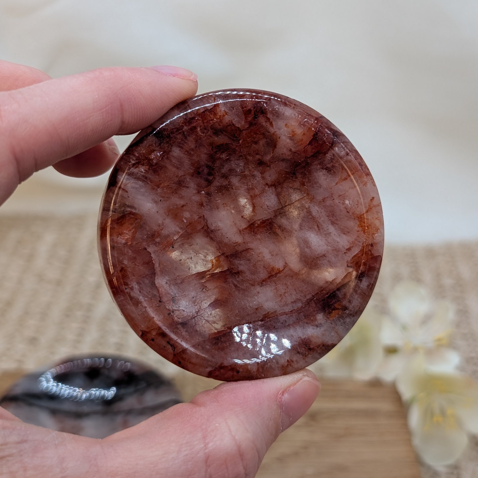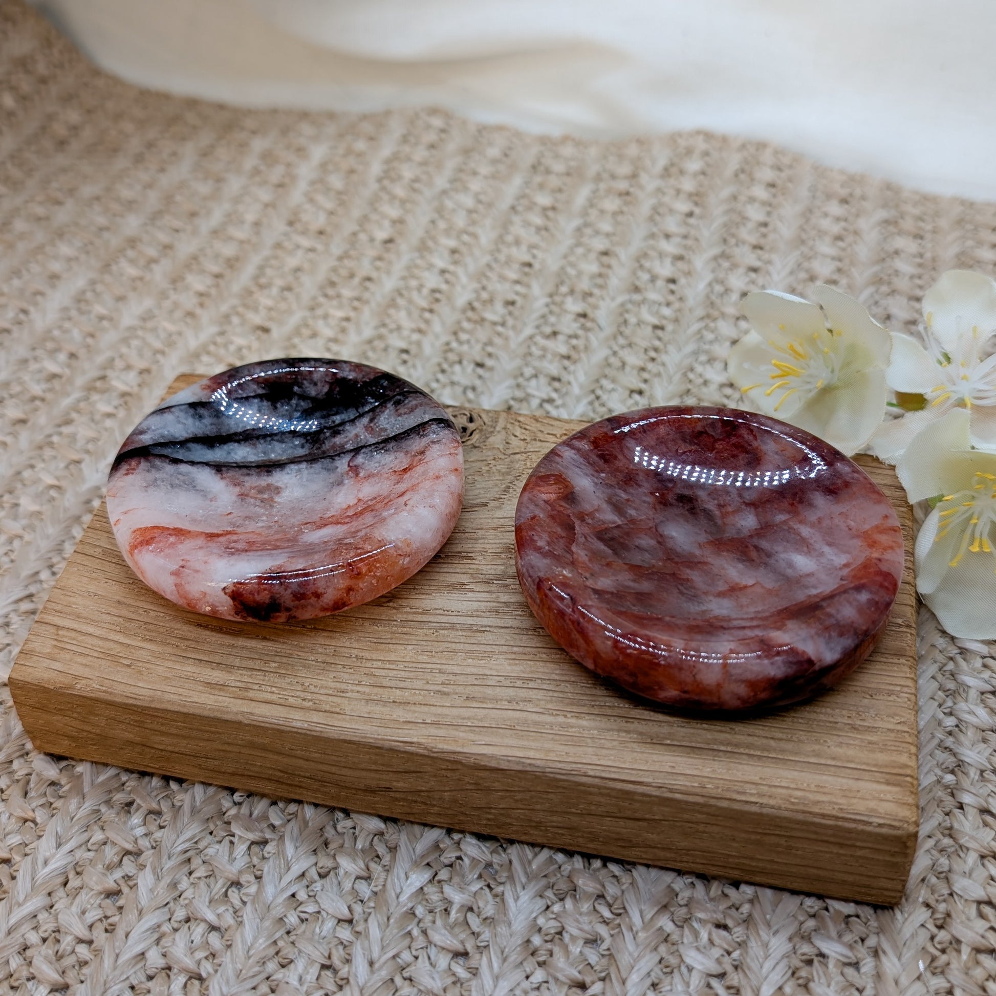 Kleine Schale aus Feuerquarz / Hämatoidquarz – perfekt zur Aufbewahrung von Trommelsteinen oder Schmuckstücken.