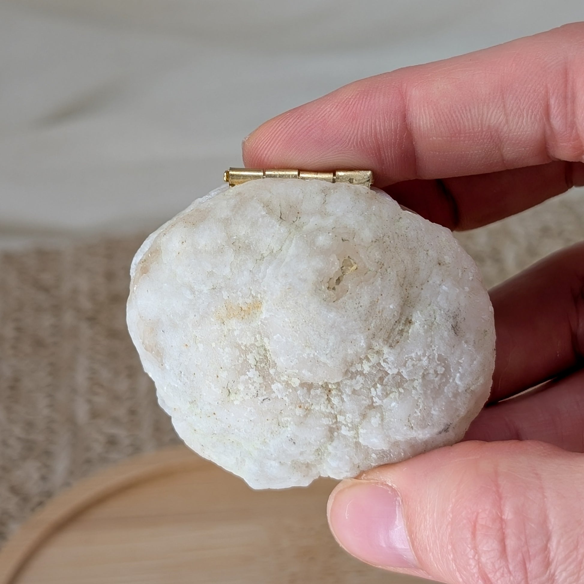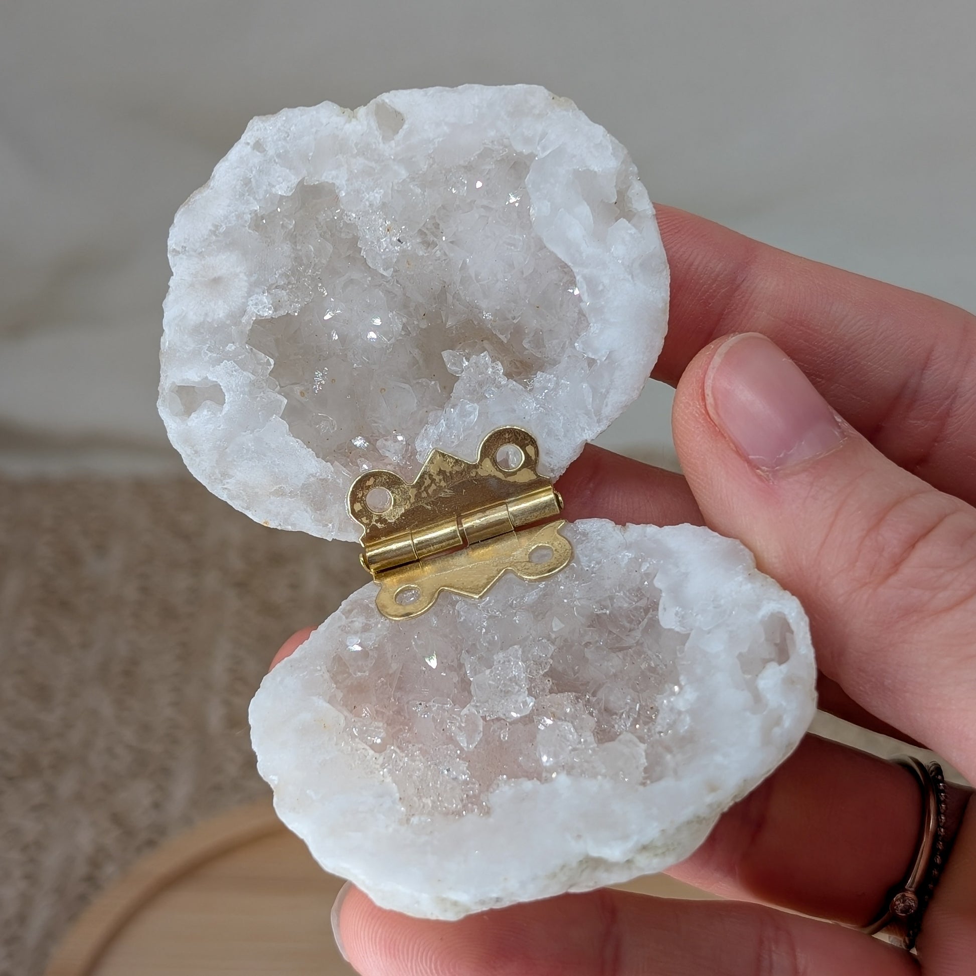 Funkelnde Quarz Geode, halbiert und zum Aufklappen