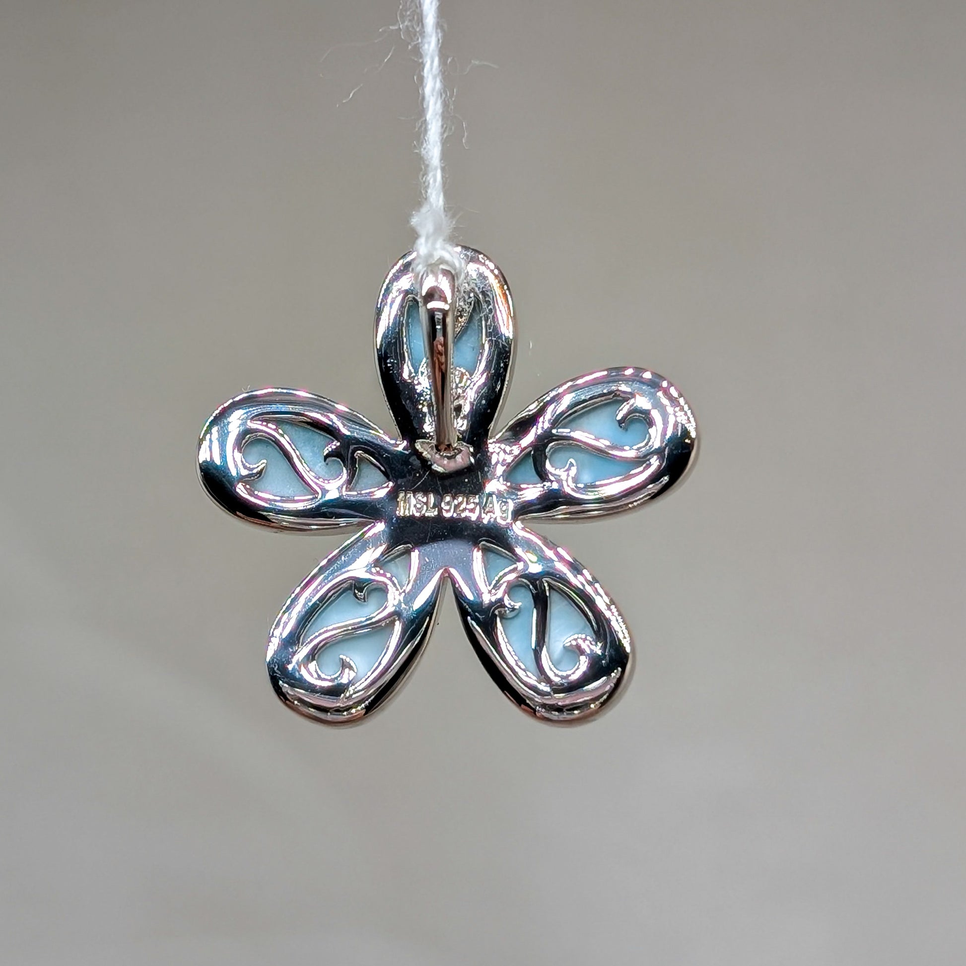 Kettenanhänger aus 925er Silber mit Larimar in Blumenform 🌸