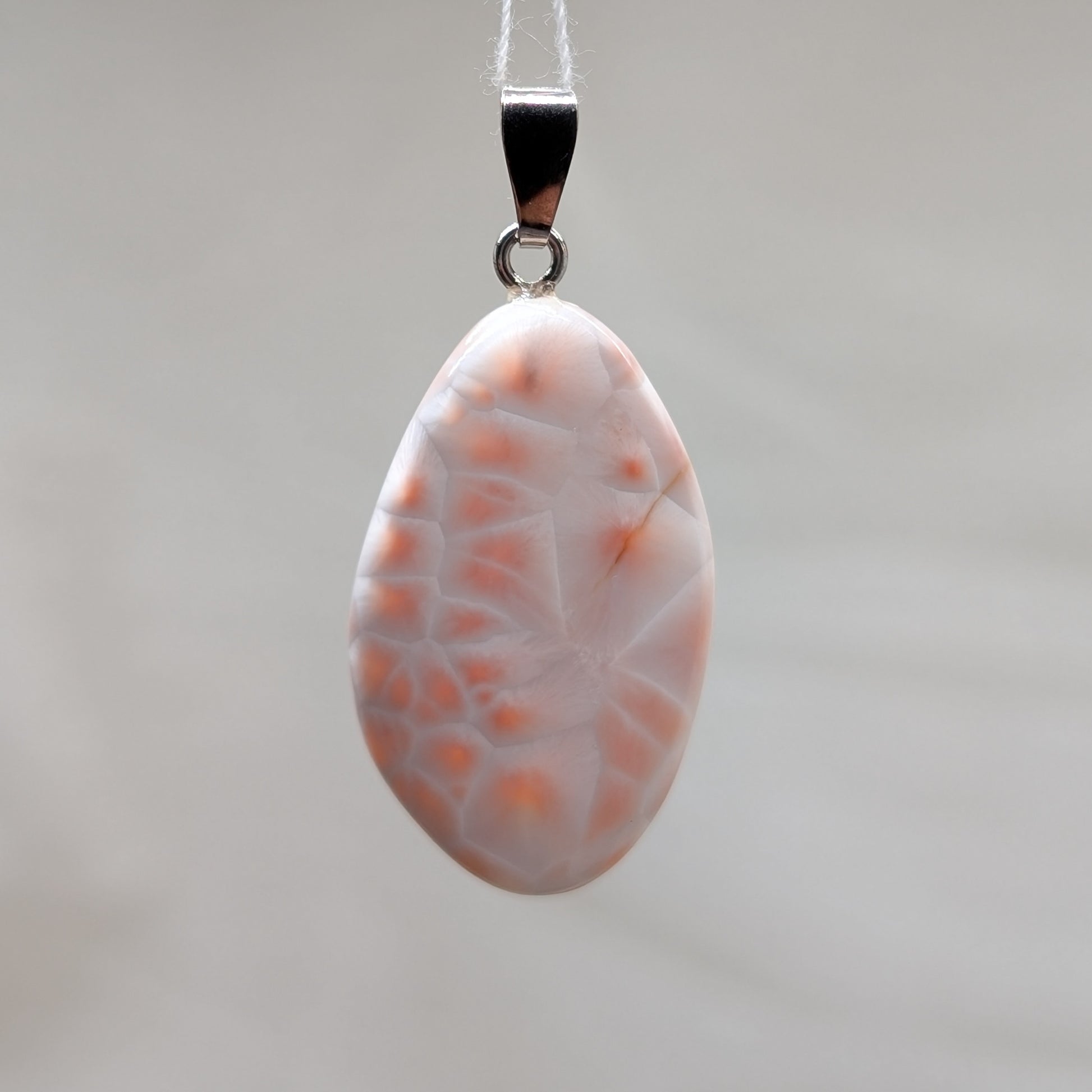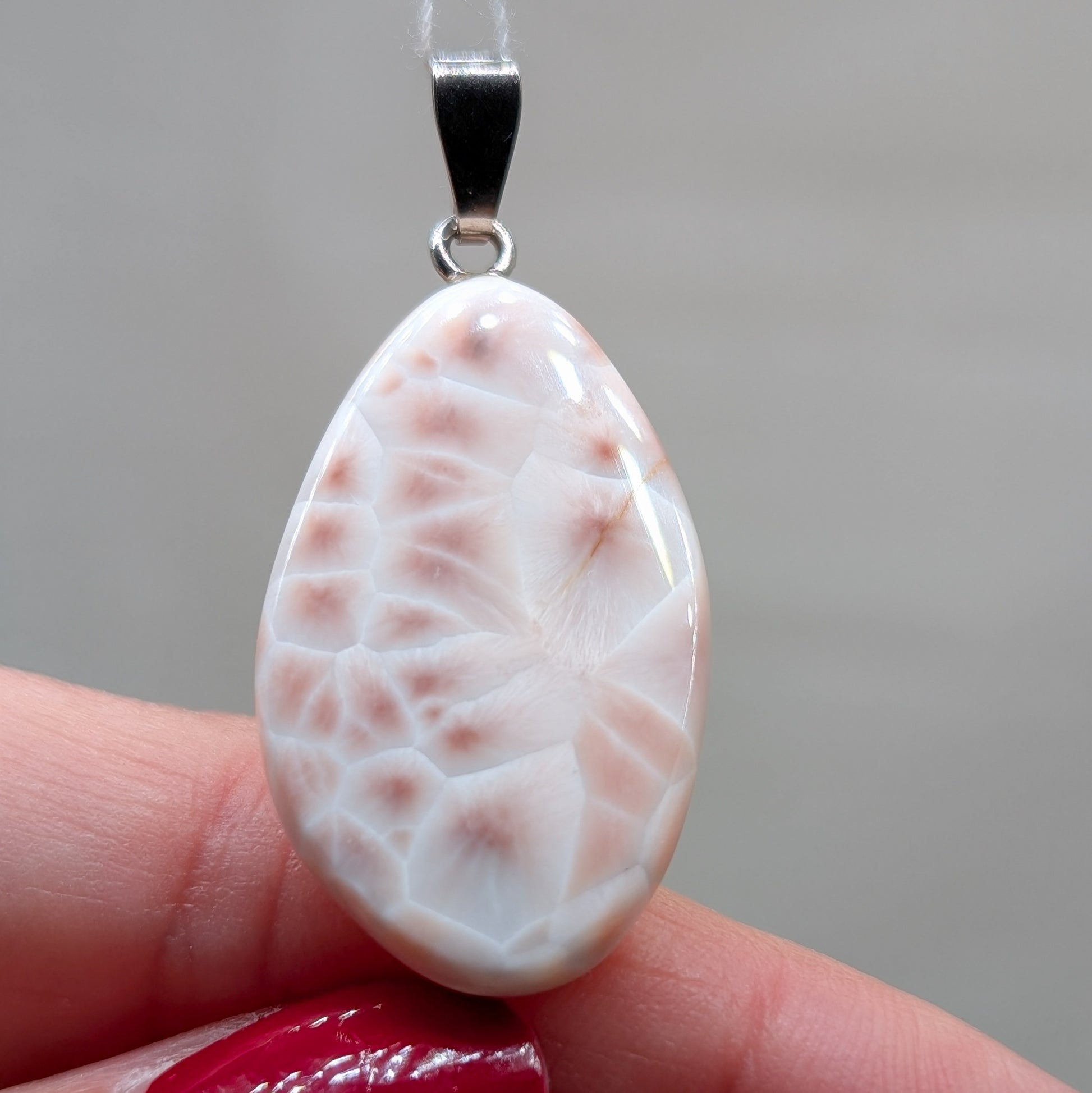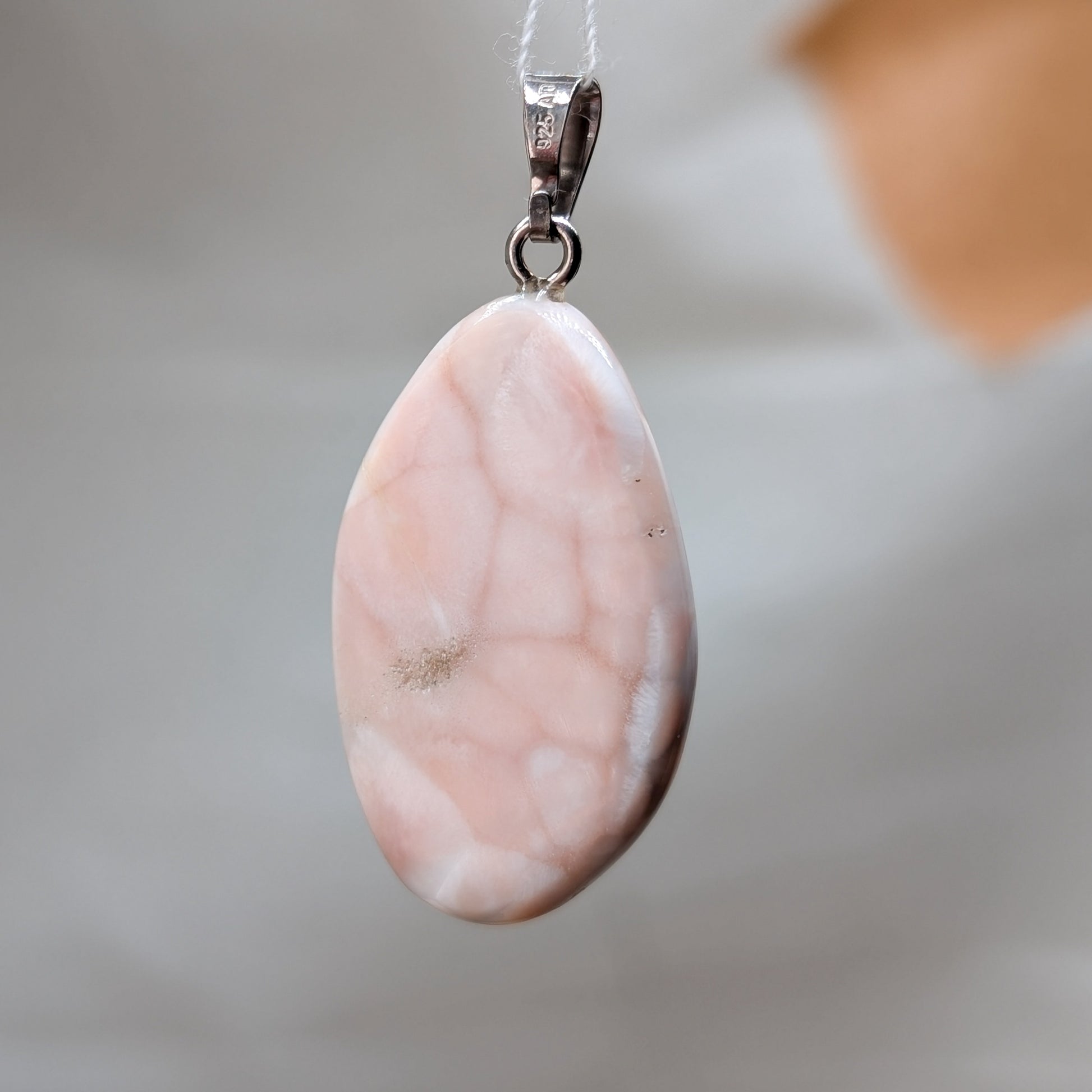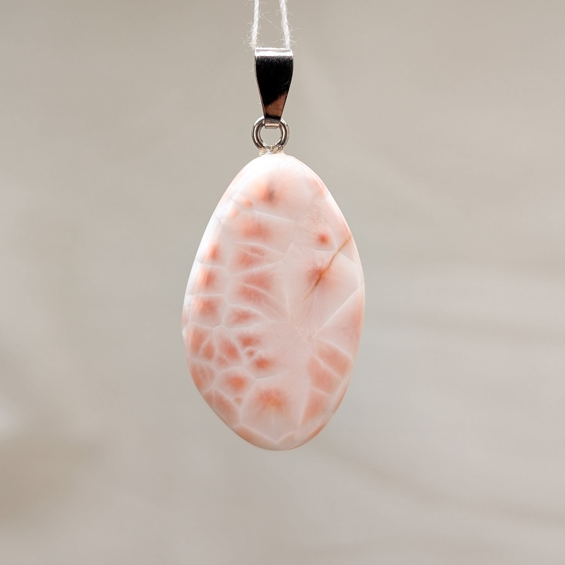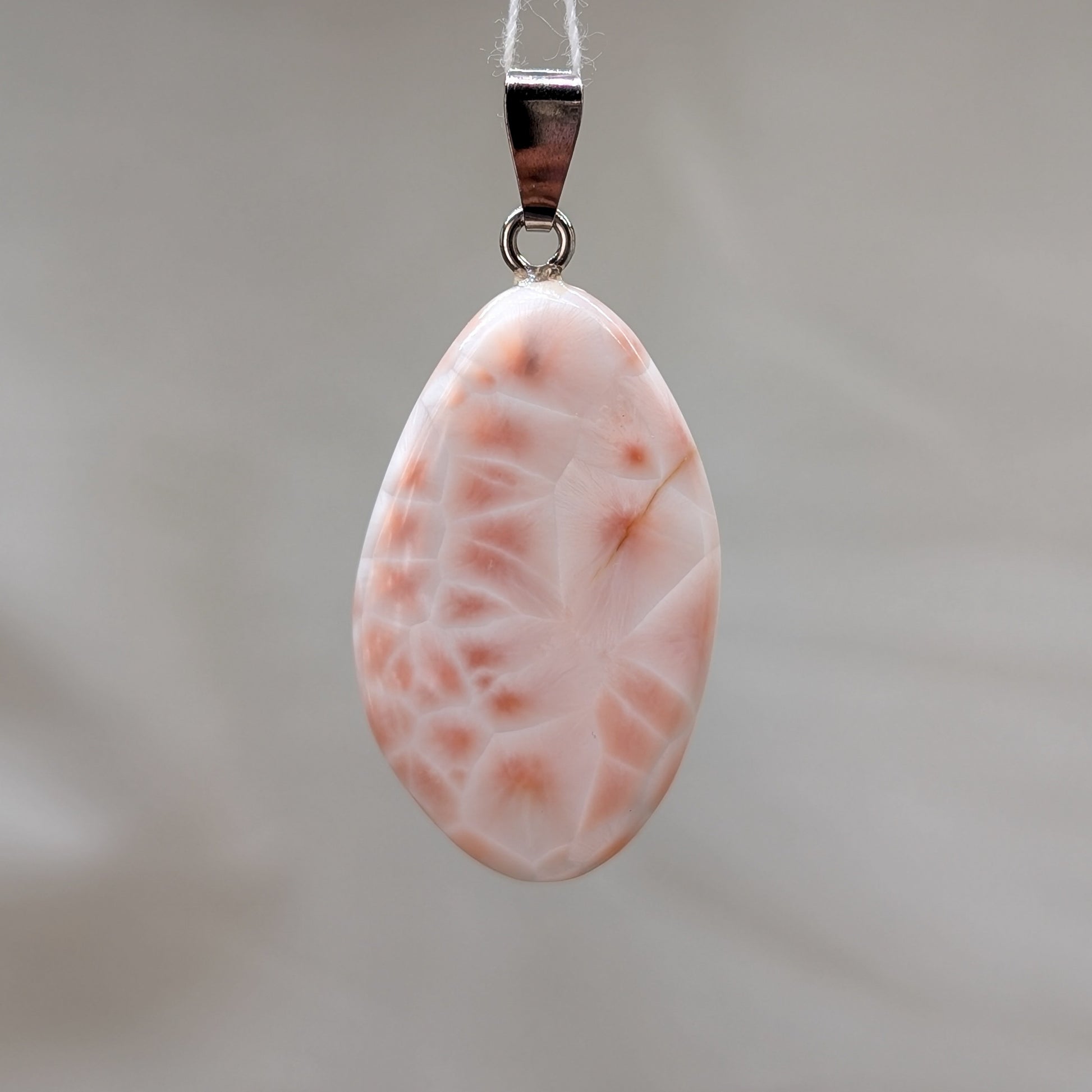 Natrolith, manchmal auch pinker Larimar genannt, Kettenanhänger mit Öse aus 925er Silber, in hochwertiger und durchscheinender Qualität.