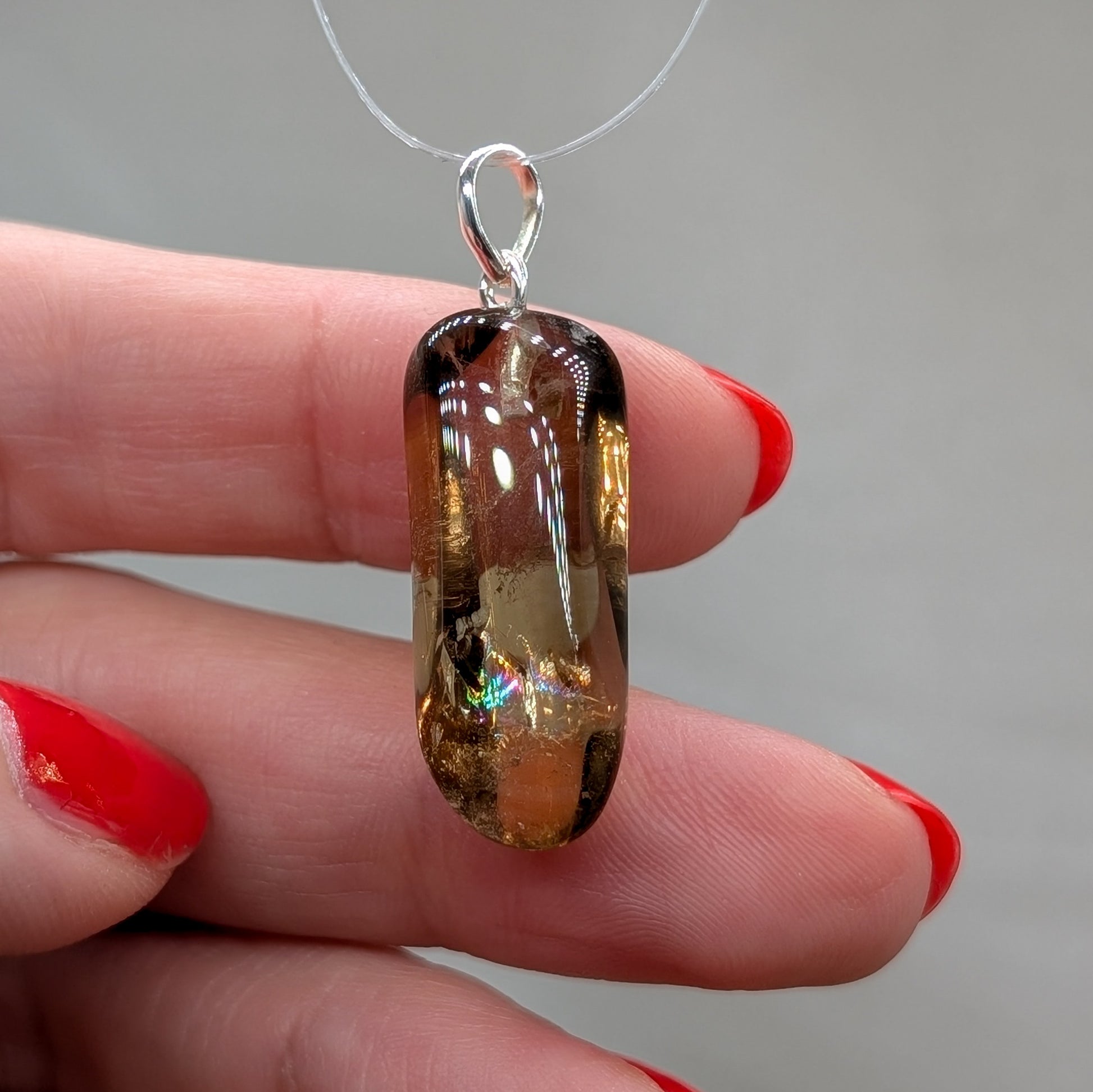 Natur Citrin Kettenanhänger mit Öse aus 925er Silber mit Regenbogen