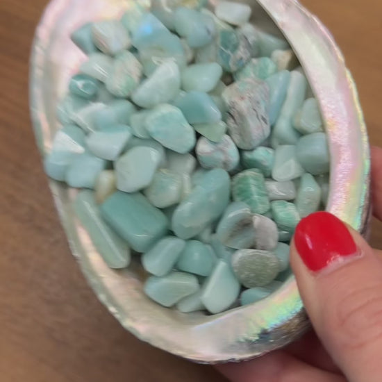 🌊 Trommelsteine: Aura Bergkristall, Amazonit, Fluorit, Honigcalcit ☀️ (ein Honigcalcit garantiert in jedem Scoop), Angelith