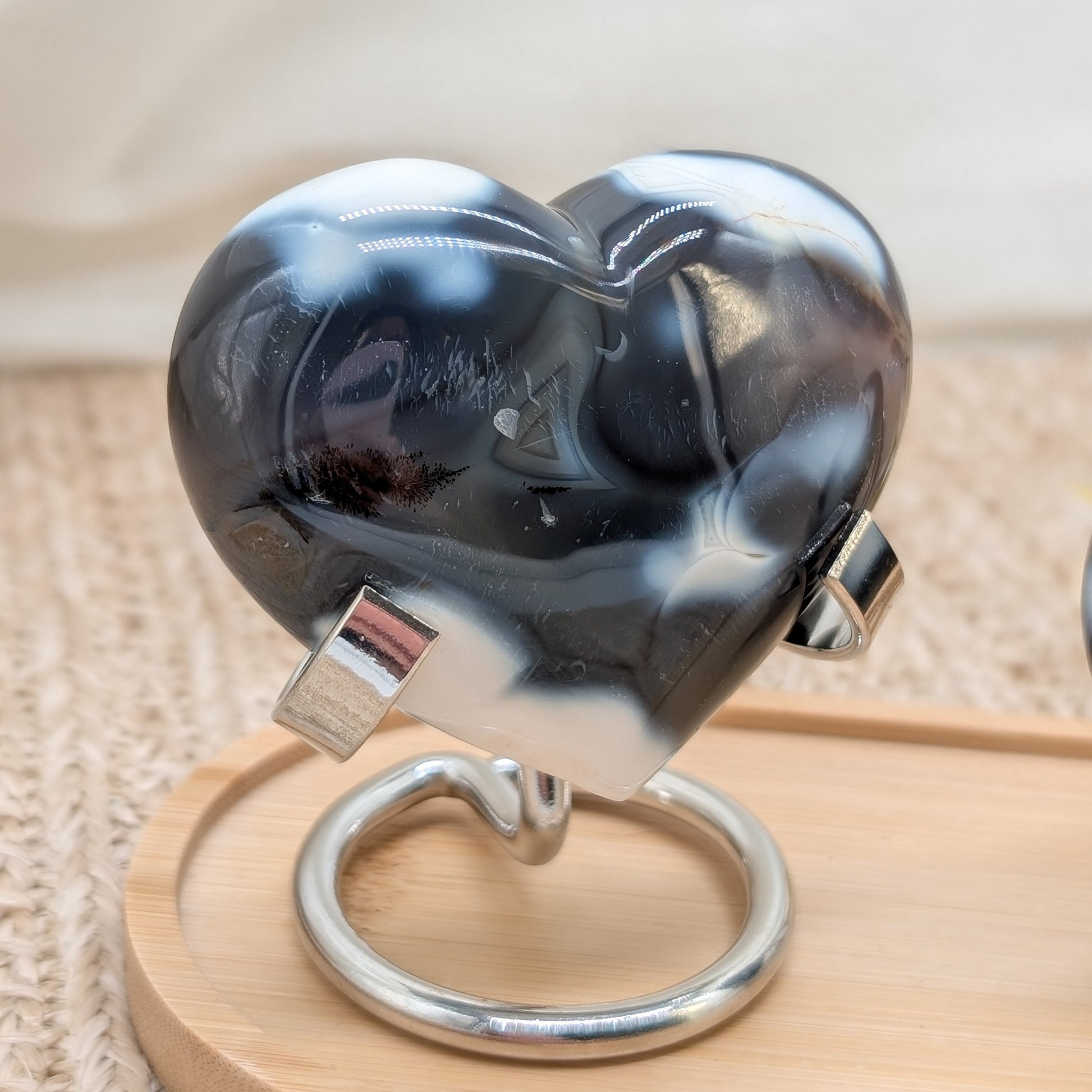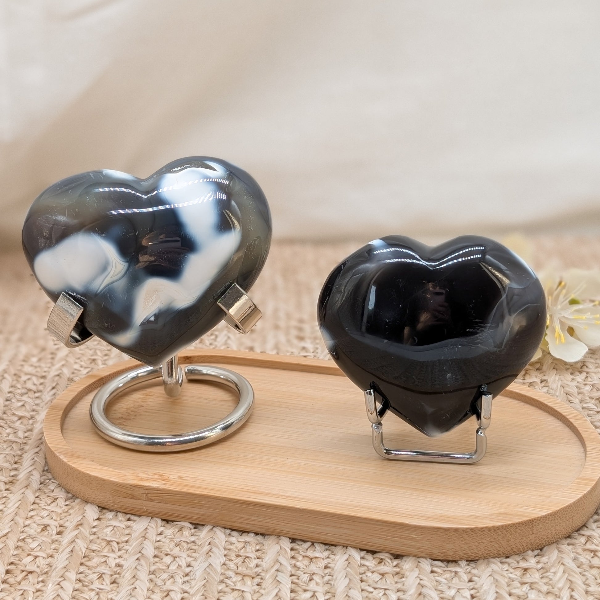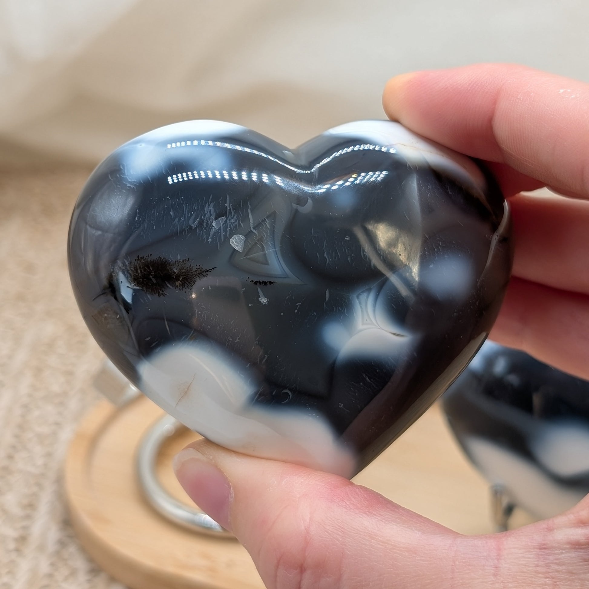 Orca Achat Herz in zwei Varianten in dunklem blau und schöner Musterung.
