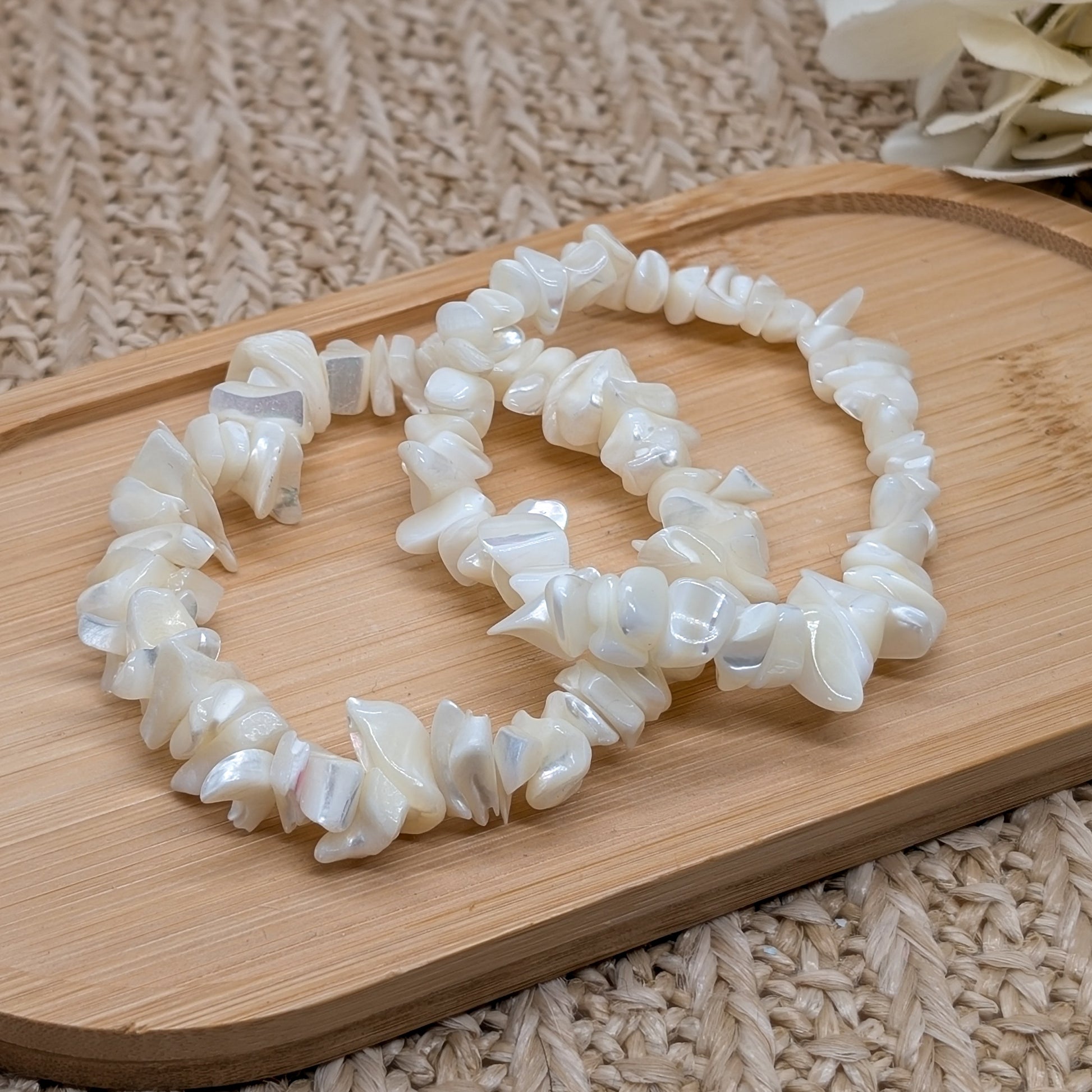 Splitterarmband in glänzendem Weiß aus Perlmutt.