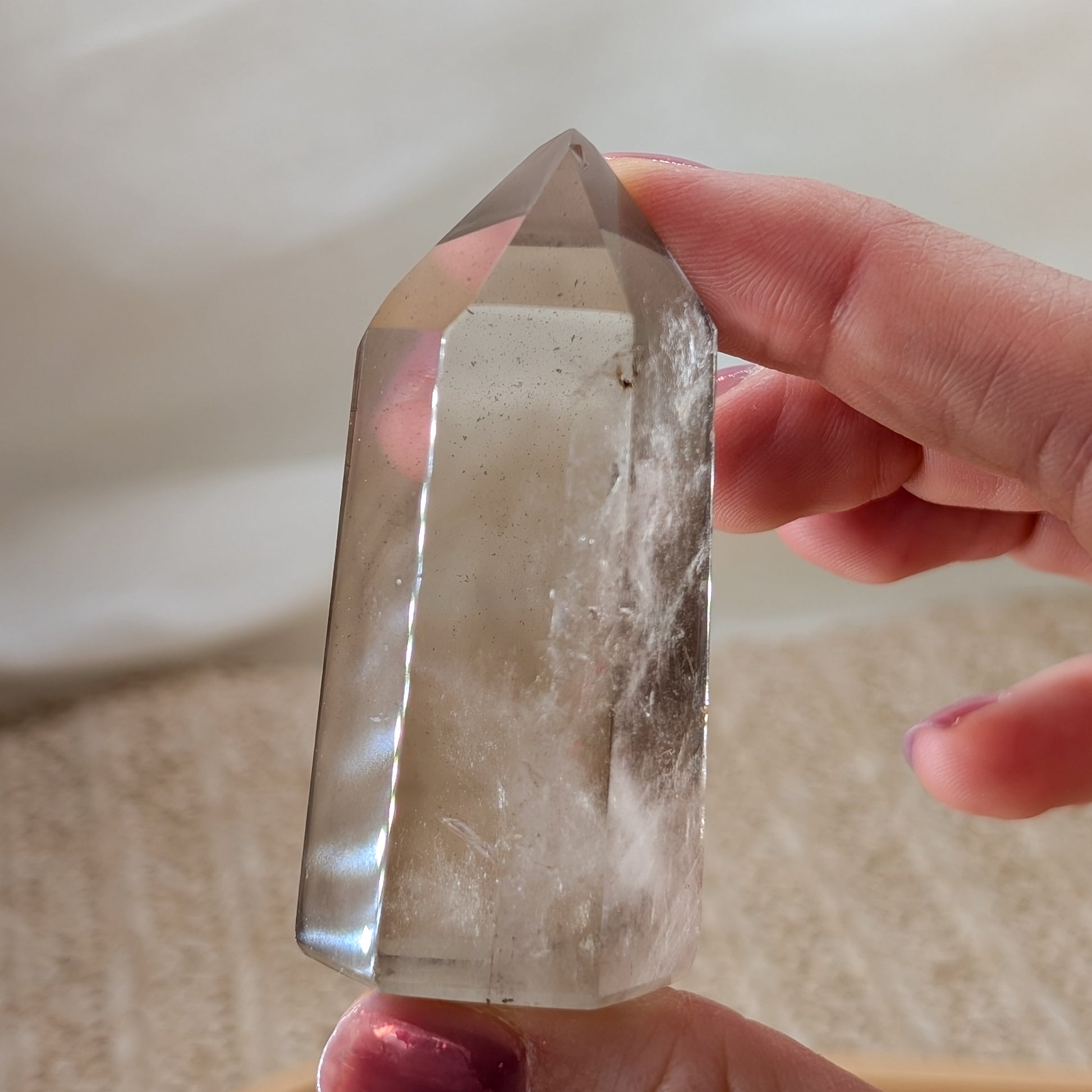 Schimmernder Rauchquarz Turm mit sehr schönen Einschlüssen.