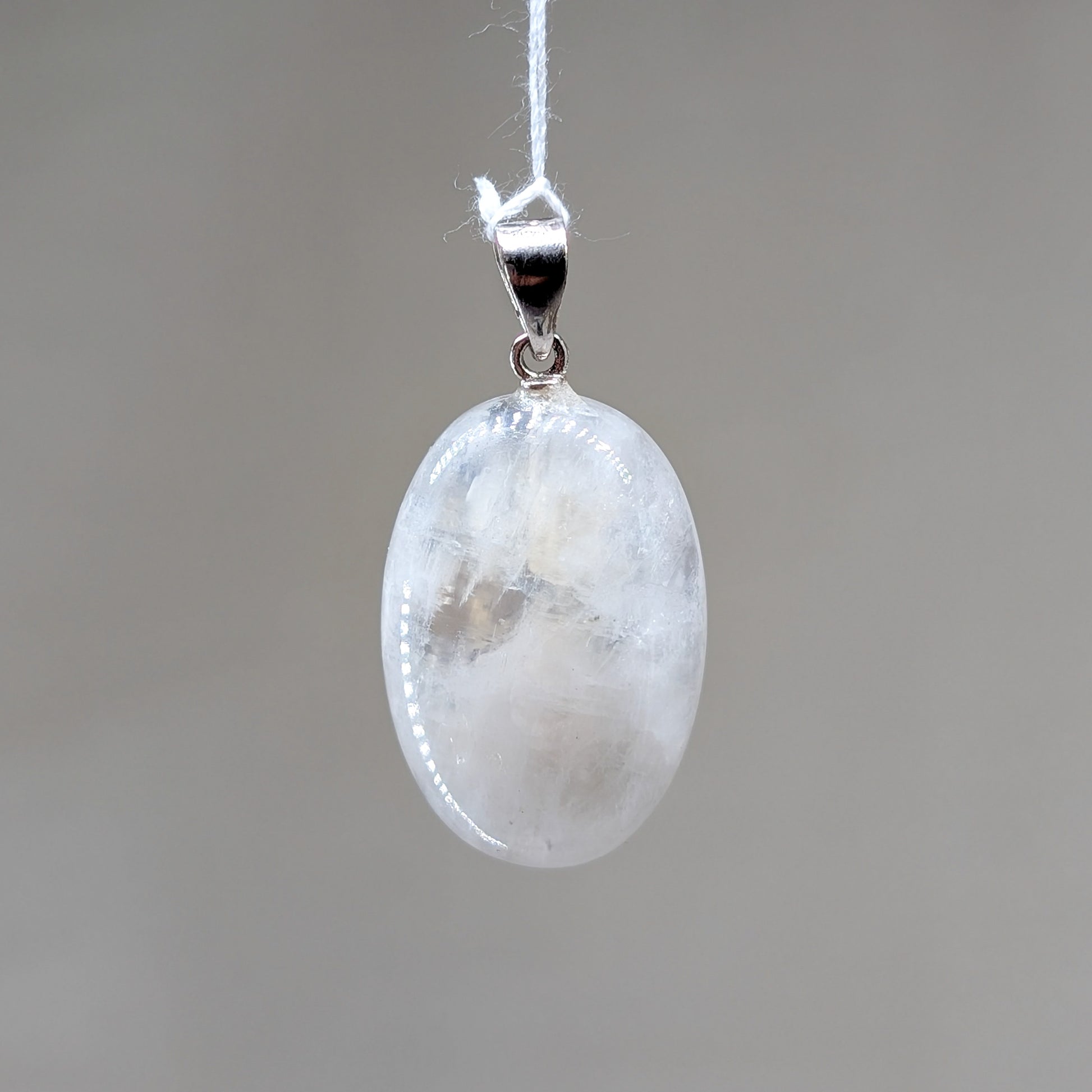 Regenbogen Mondstein / weißer Labradorit Kettenanhänger mit ausgeprägtem Blauflash – und rhodinierter Öse aus 925er Silber
