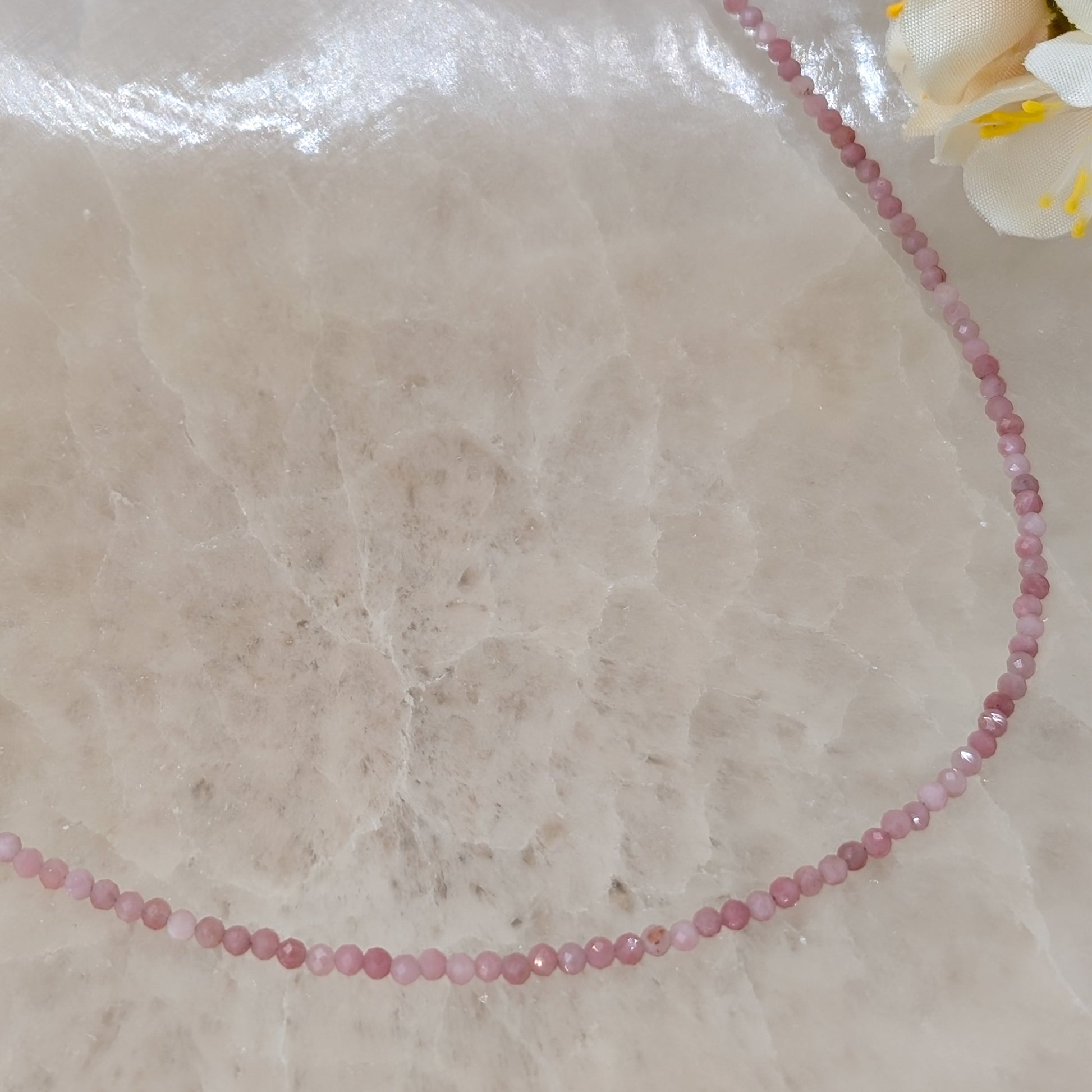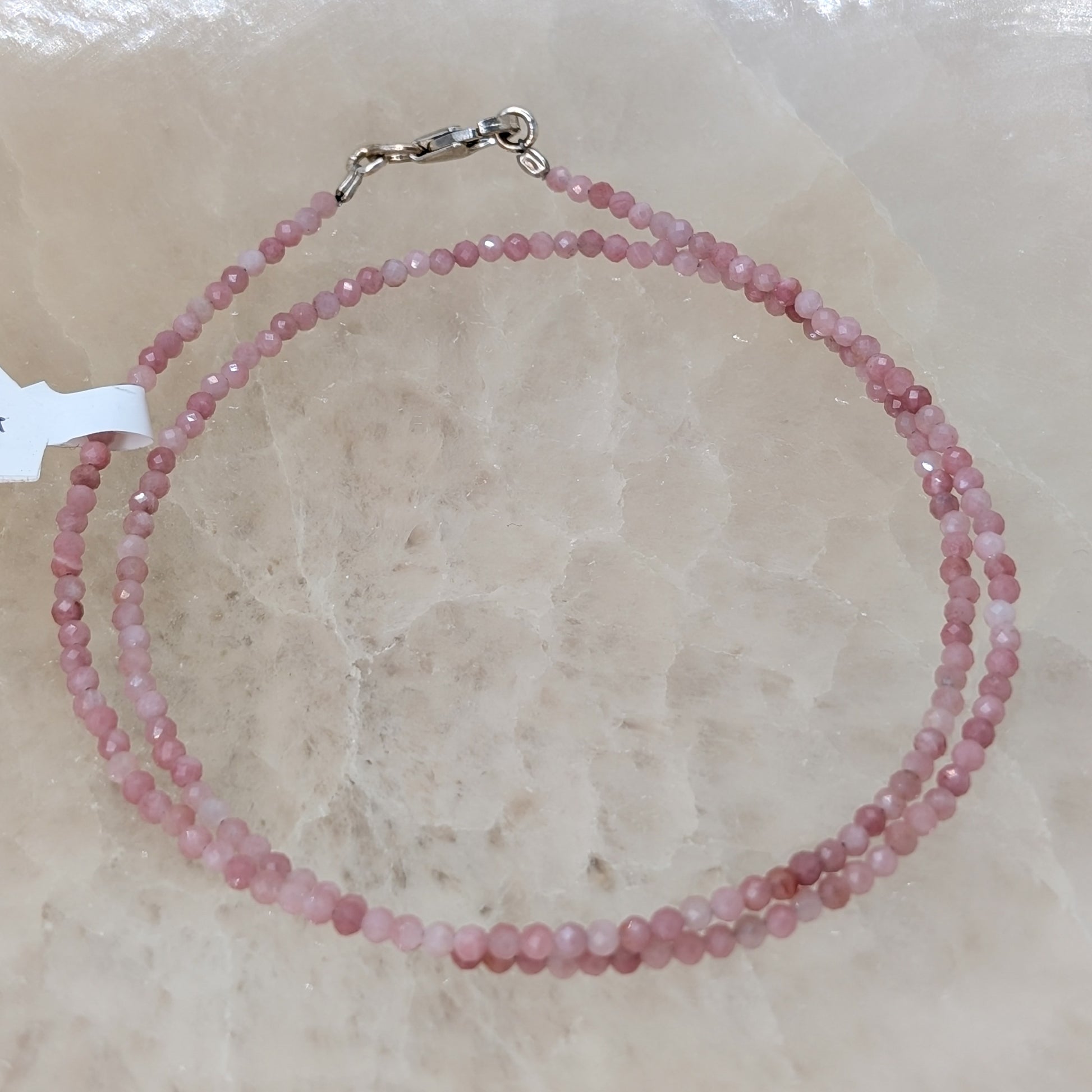 Edelstahl Halskette aus Rhodonitmit facettiertem Perlen mit 0,2 cm Durchmesser 🩷❤️