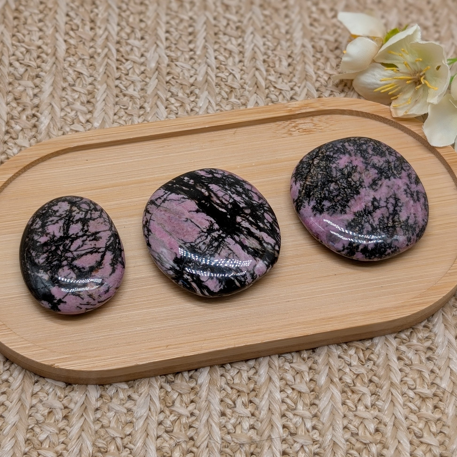 Rhodonit Scheibenstein mit schöner Musterung in drei Varianten: