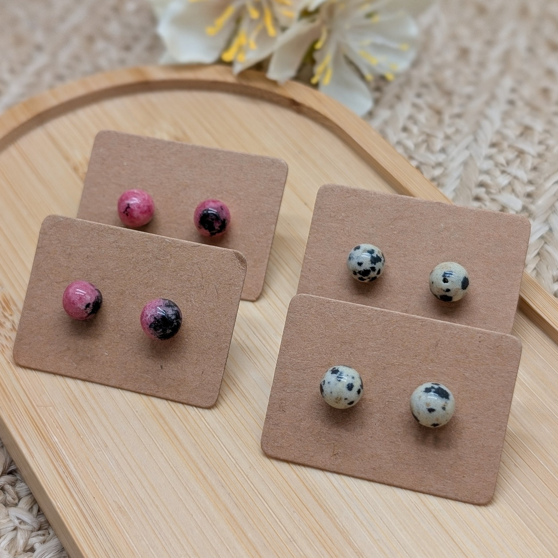 Ohrstecker mit 6 mm Kugel und Stab/Verschluss in 925er Silber. Verfügbar in 2 Varianten: Rhodonit und Dalmatinerjaspis
