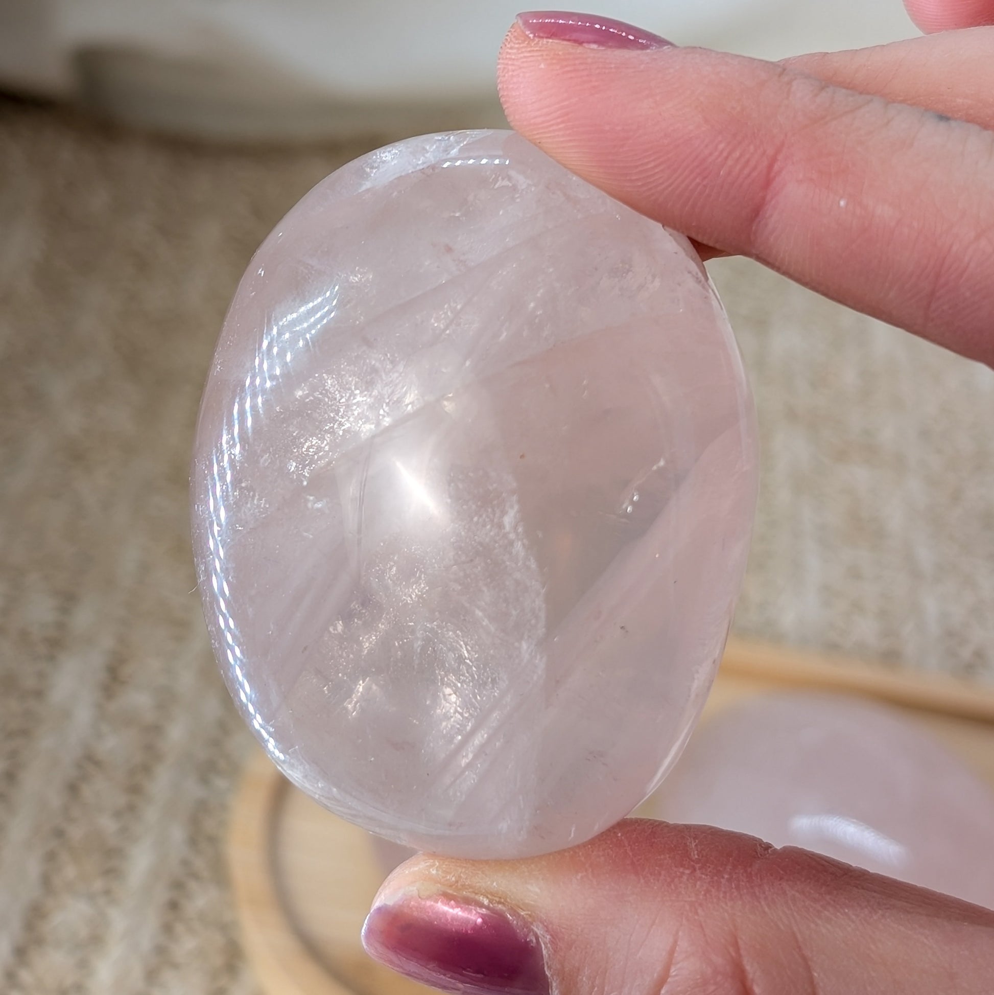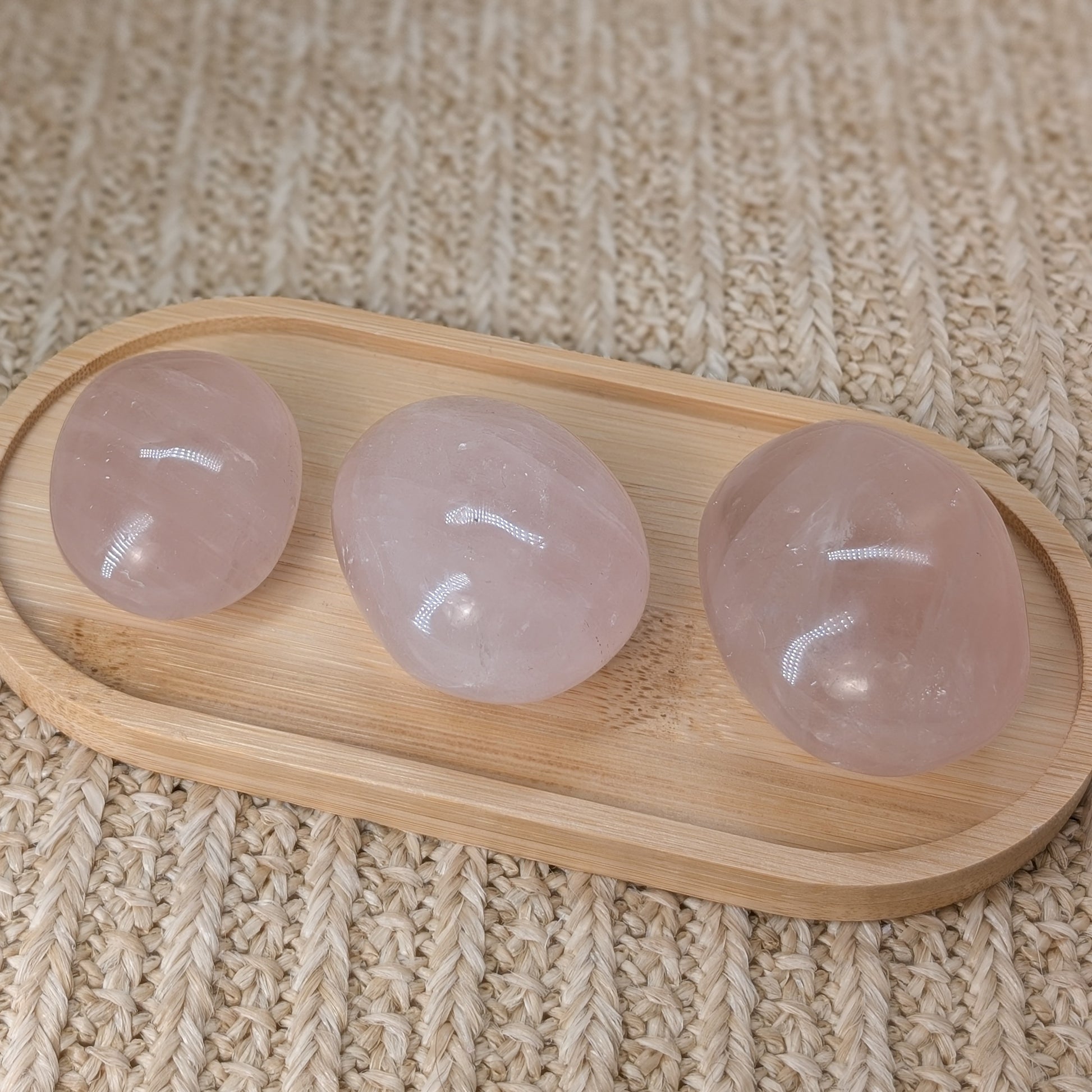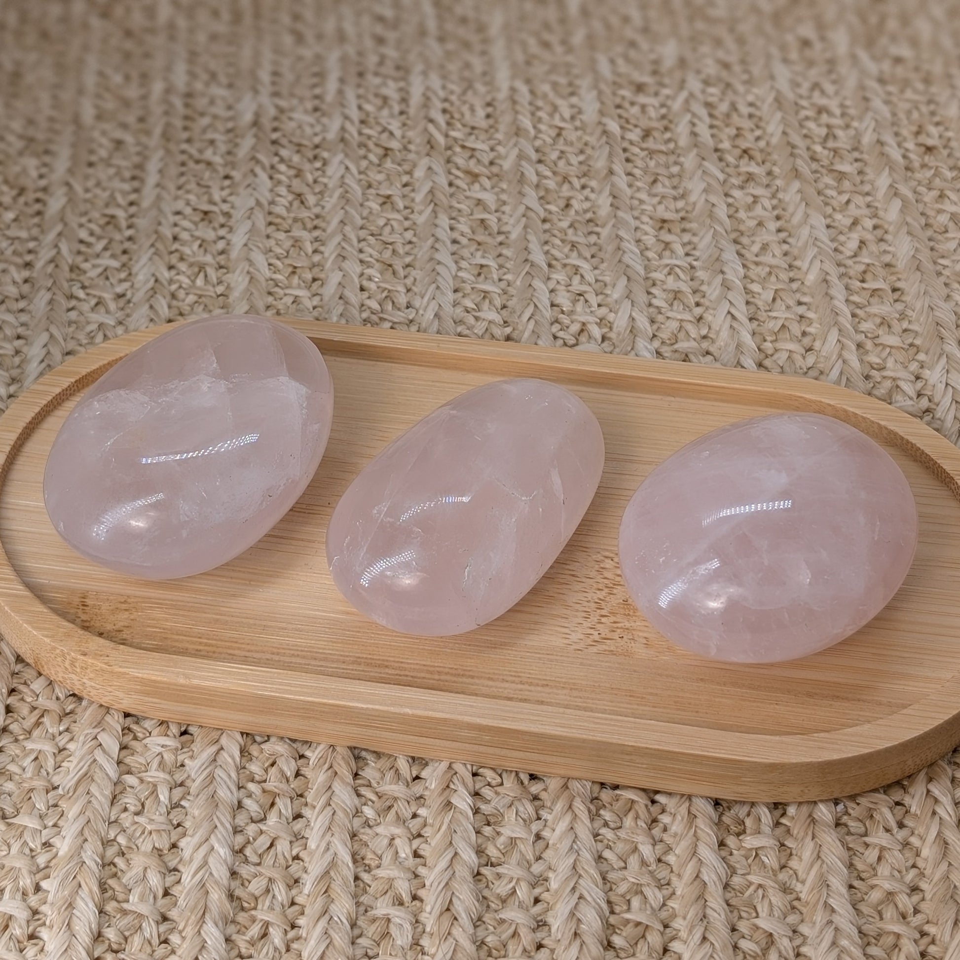 Alle drei Rosenquarz Handsteine haben Asterismus, also einen Stern 💫