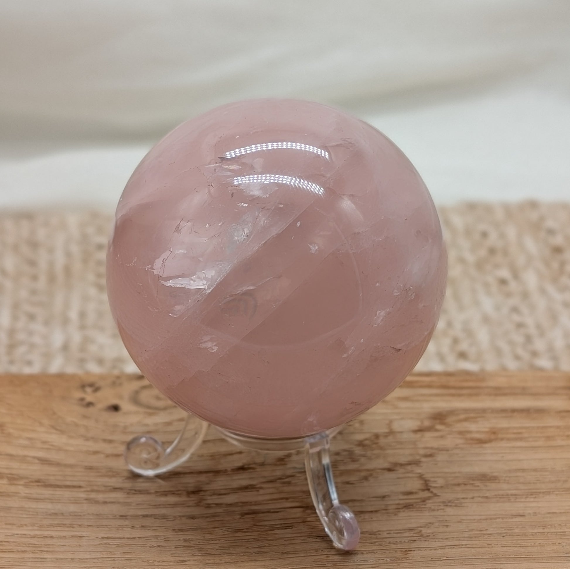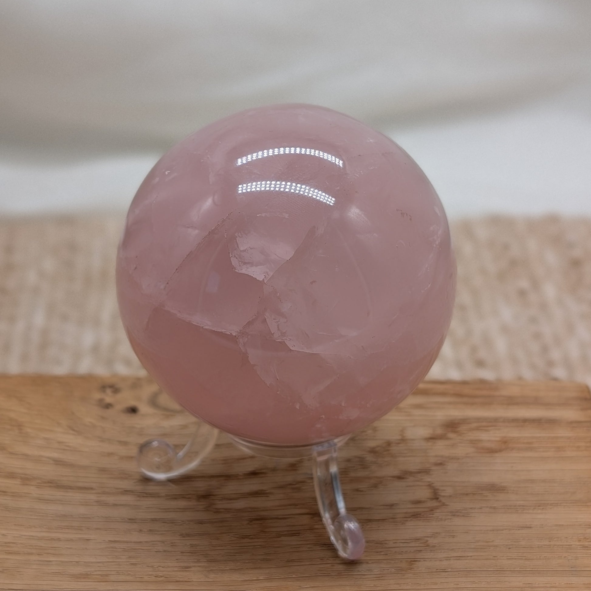 Schöne Rosenquarz Kugel in intensiver Farbe mit Stern (Asterismus) und Regenbogen 🌈