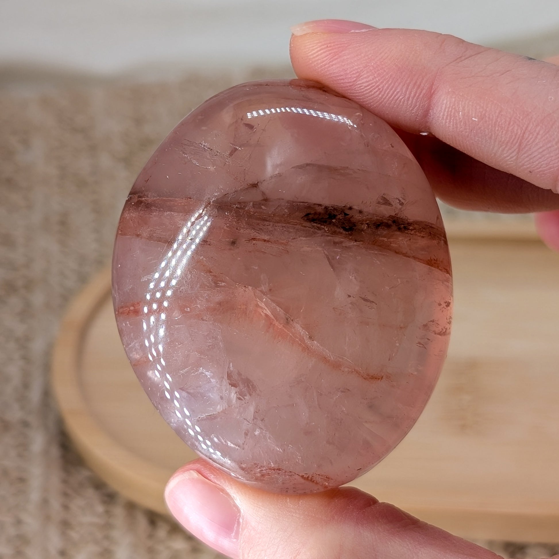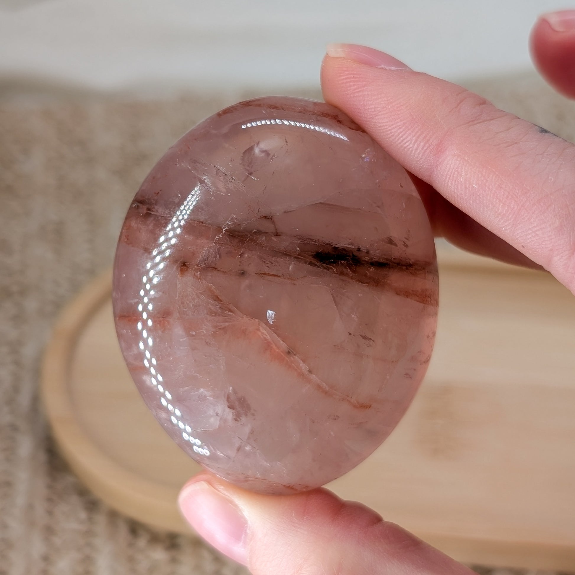 Red Healer / Rosenquarz mit Hämatit Einschlüssen und Stern (Asterismus), kleine Regenbogen und Schimmer