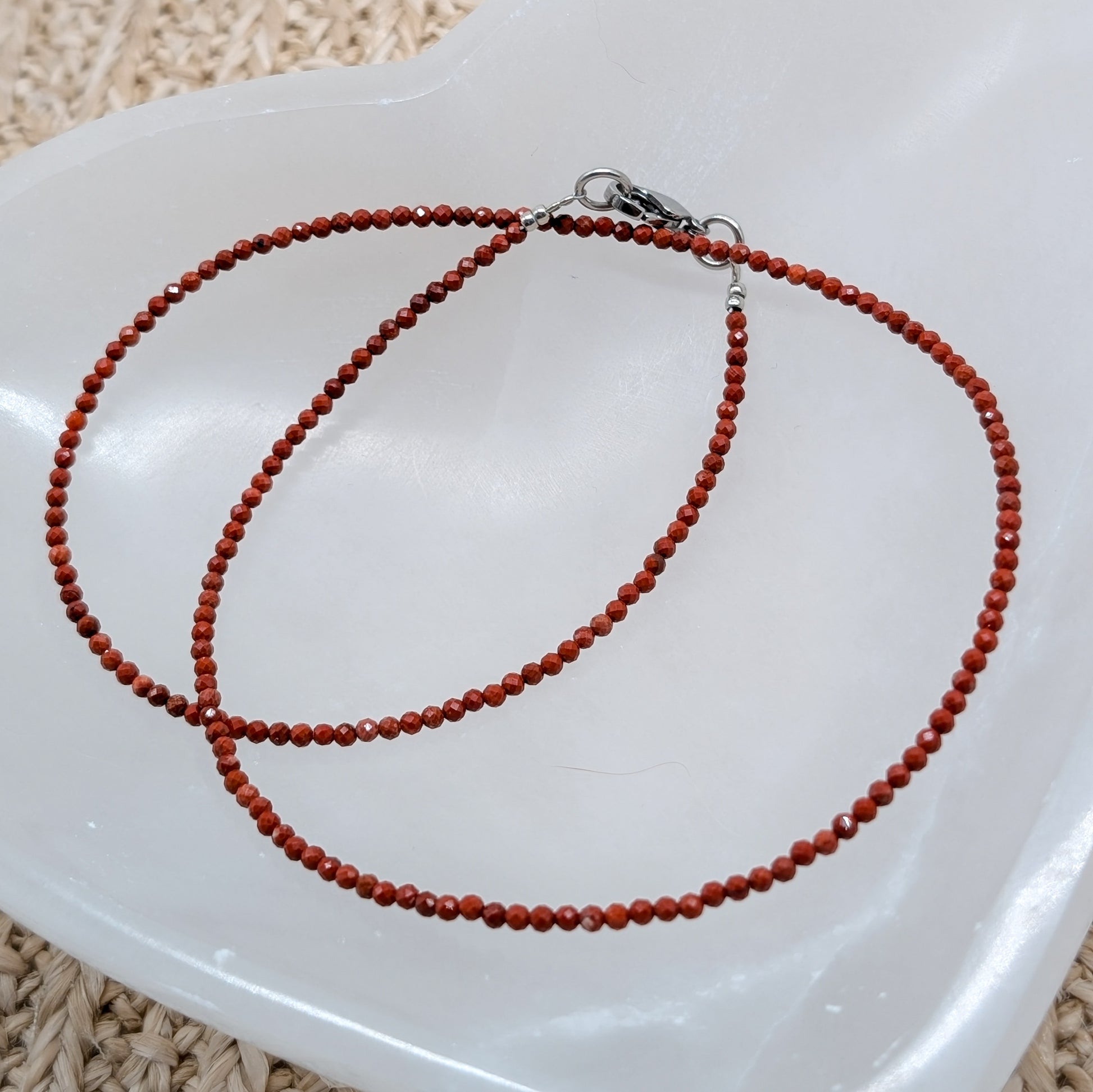 Edelstahl Halskette aus rotem Jaspis mit facettiertem Perlen mit 0,2 cm Durchmesser ❤️