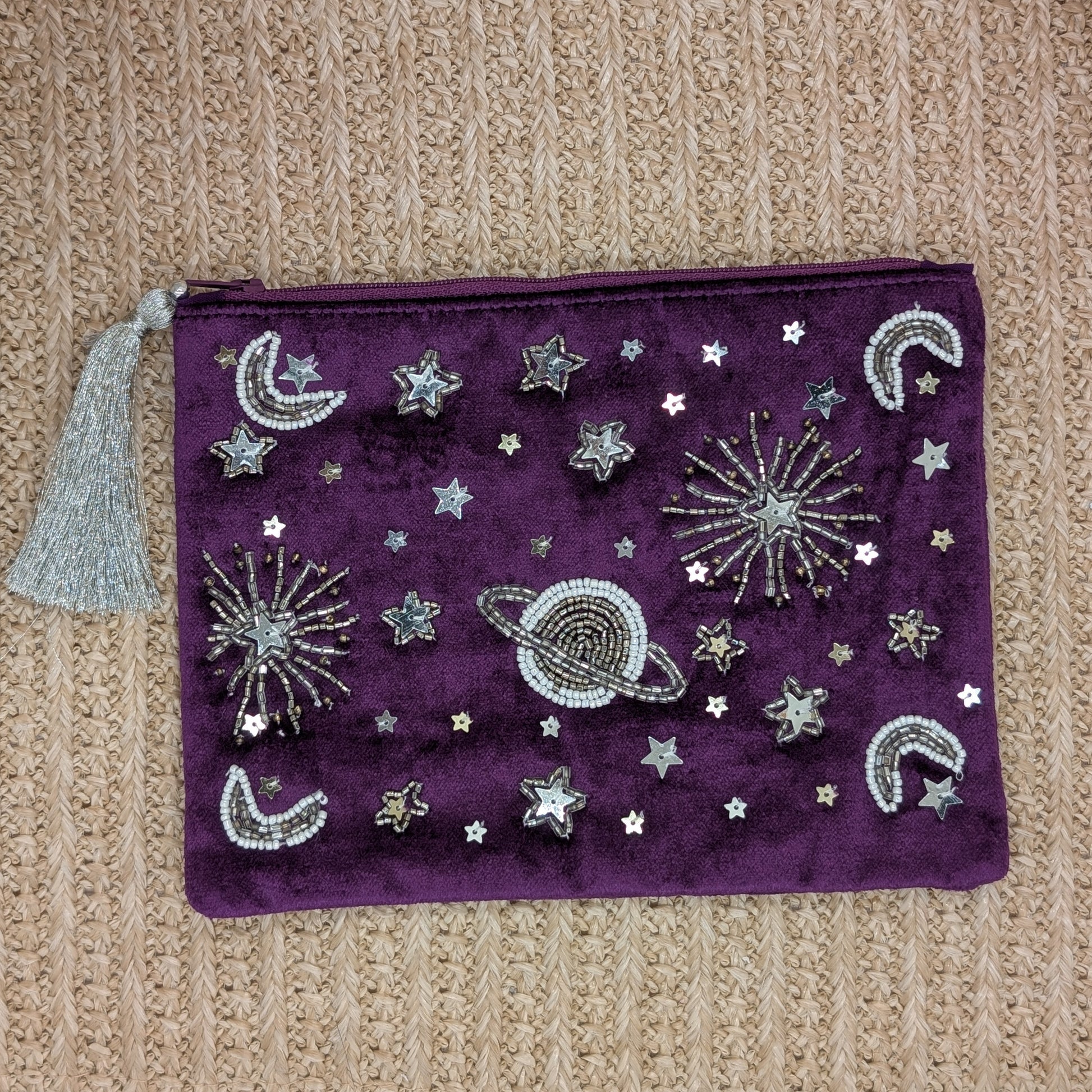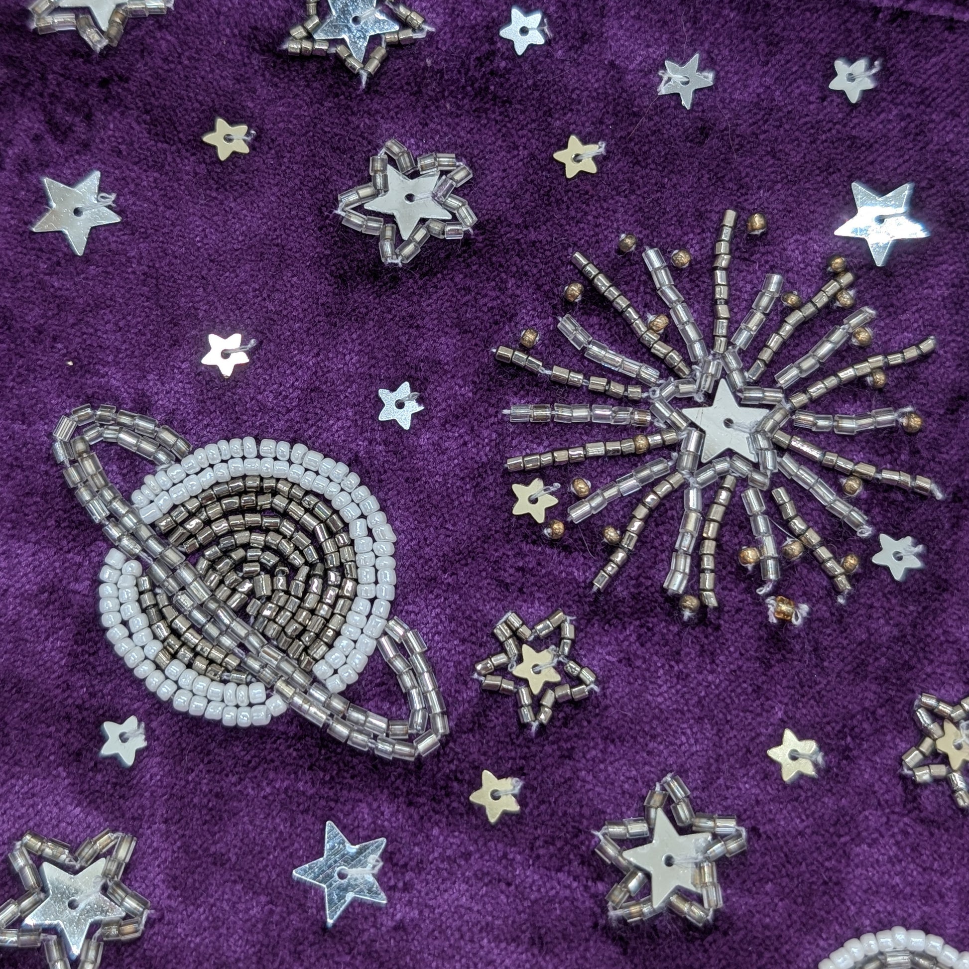 Bestickter Samtbeutel zur Aufbewahrung von Schmuck, Tarotkarten, Trommelsteinen oder anderen Schätzen. Verschließbar mit Reißverschluss.