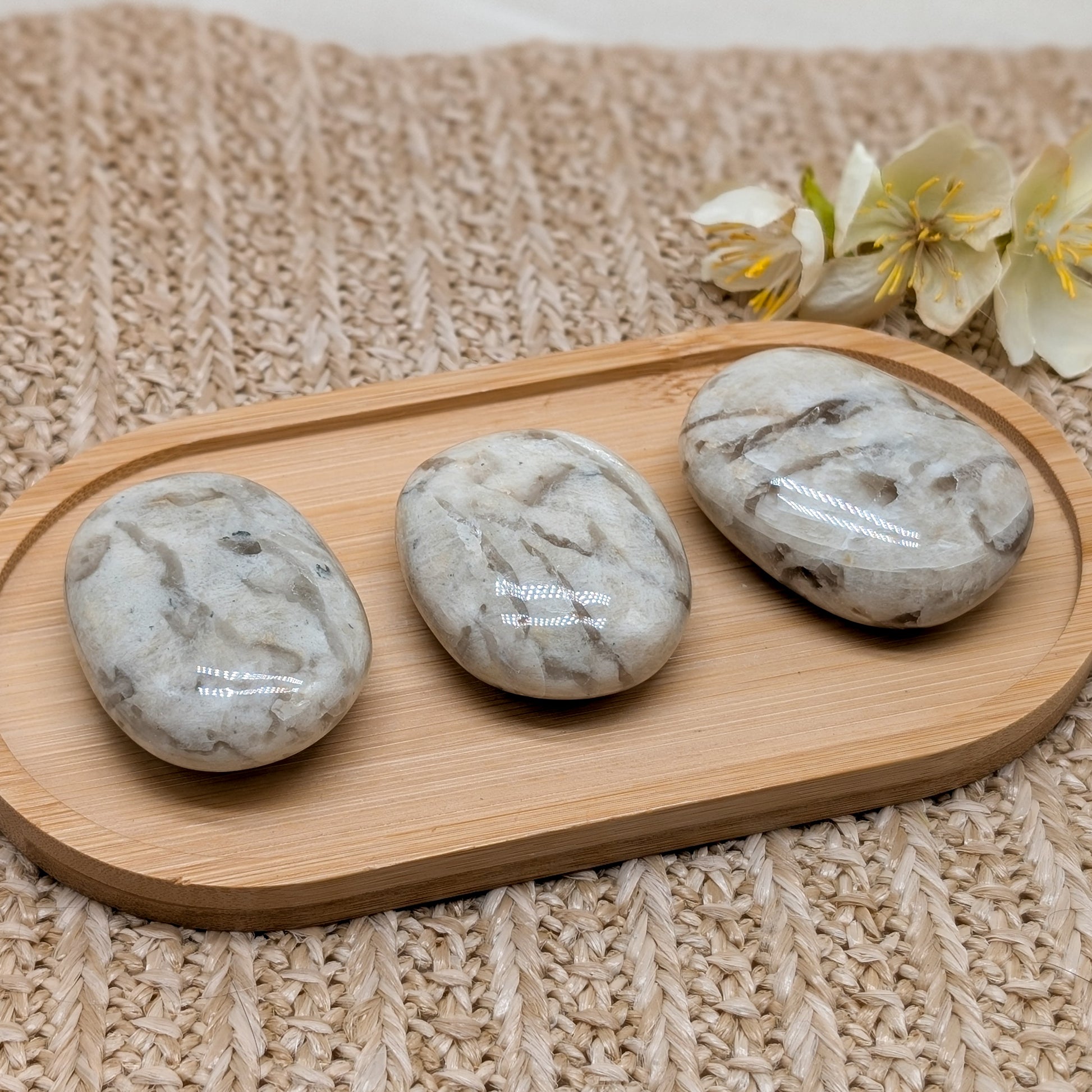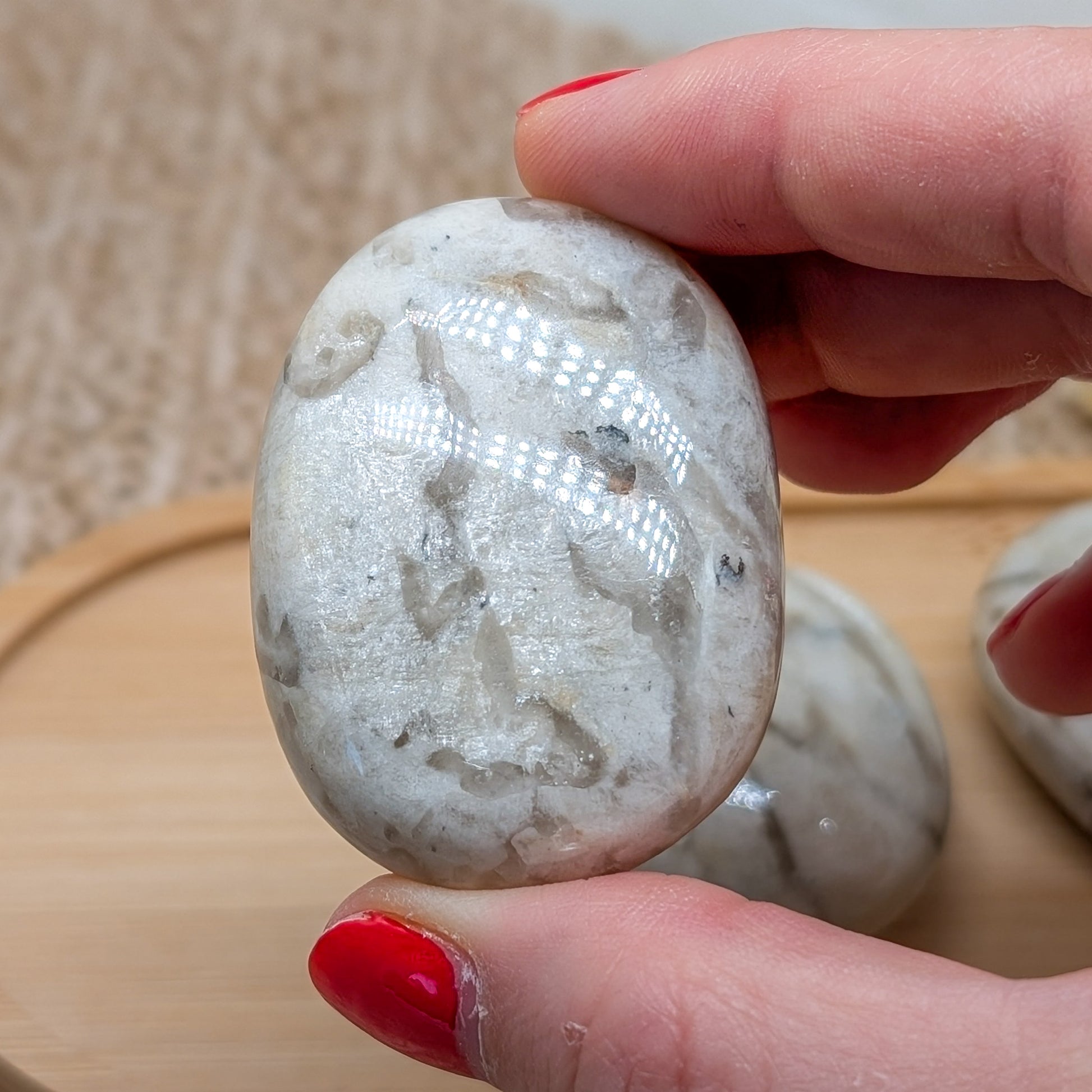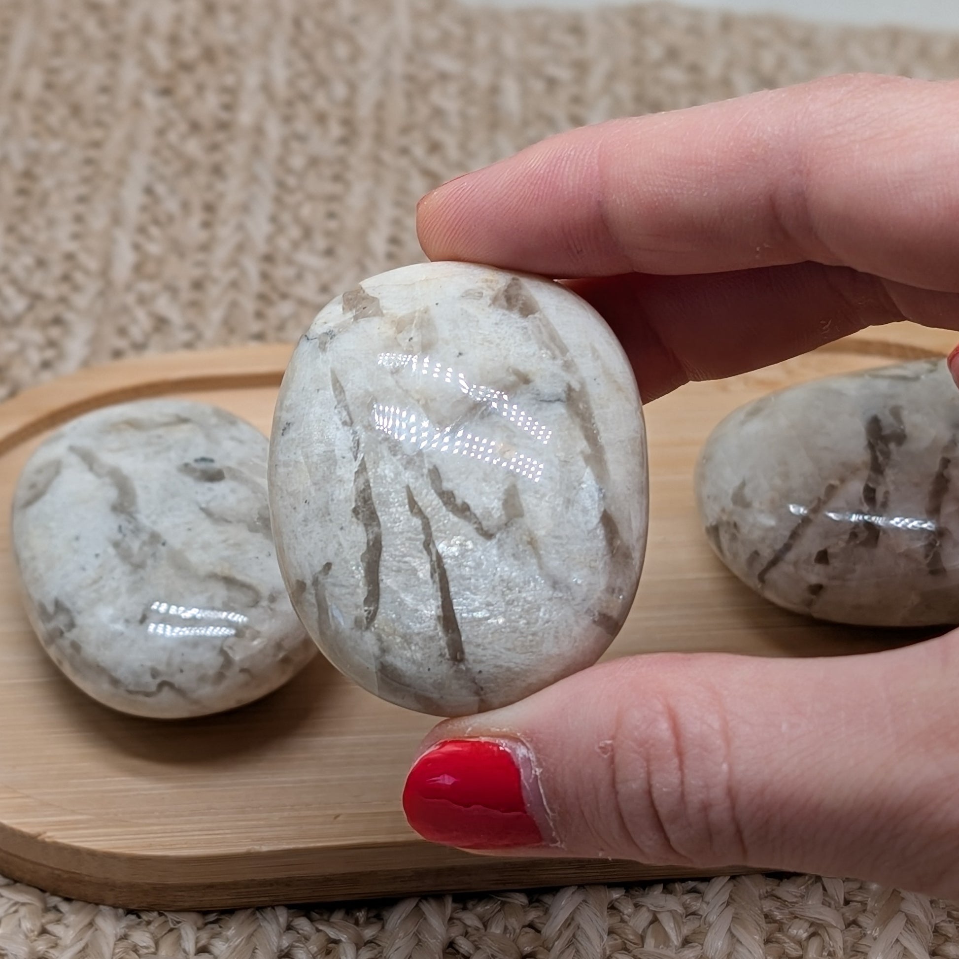 Schrift Feldspat Handstein mit schönem Silberschimmer in drei Varianten: