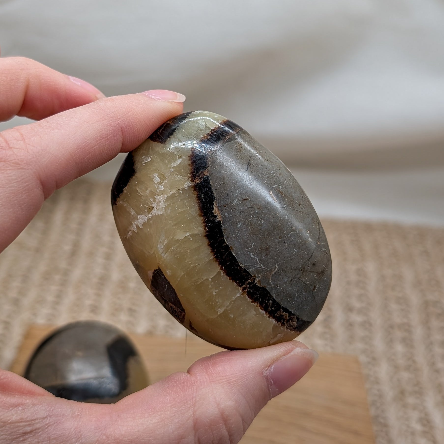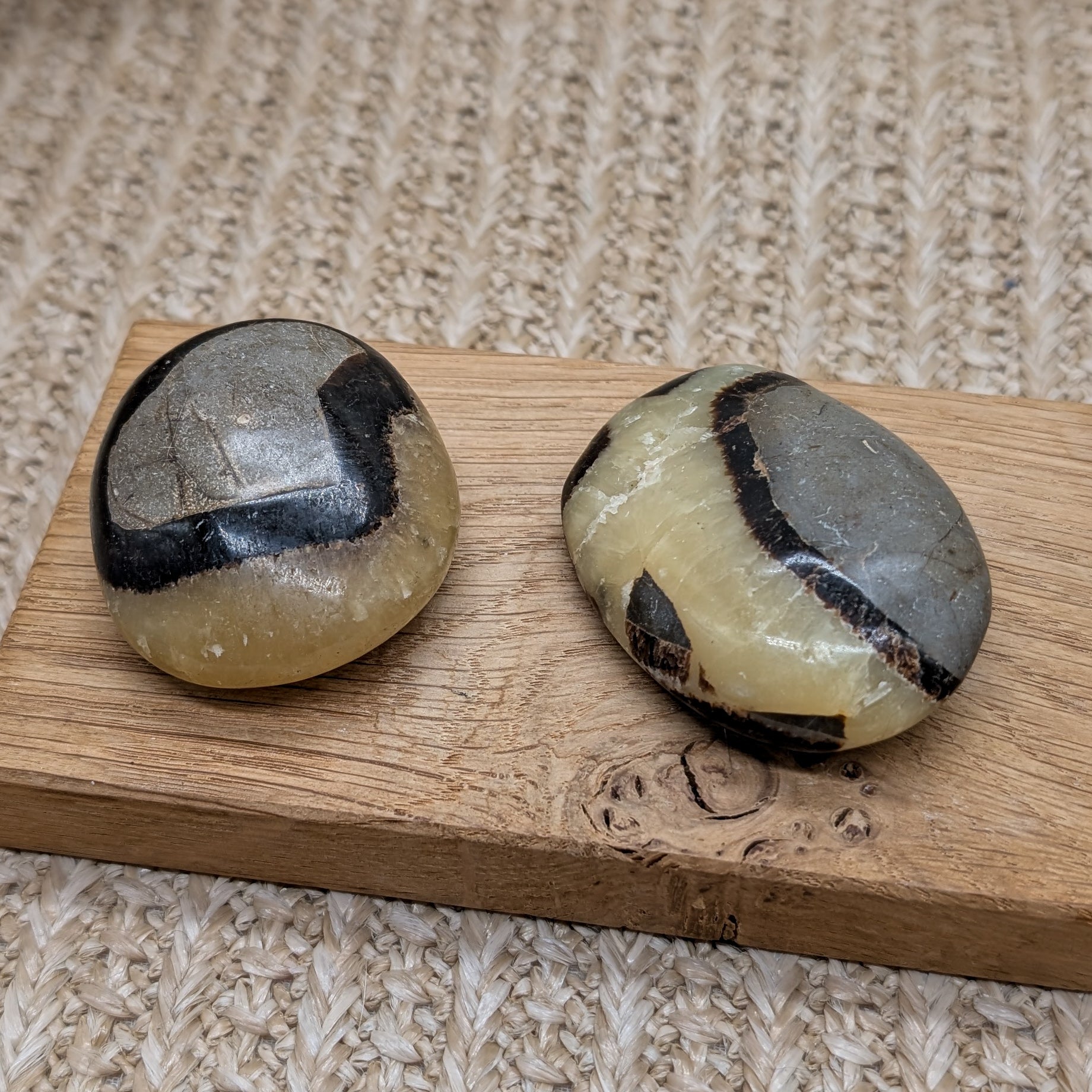 Septarien Handstein mit der typischen Musterung in 2 Varianten: