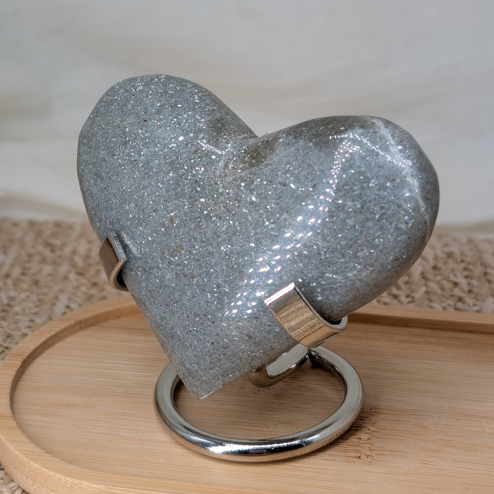 Funkelnd und glitzerndes Herz aus silbernem Aventurin