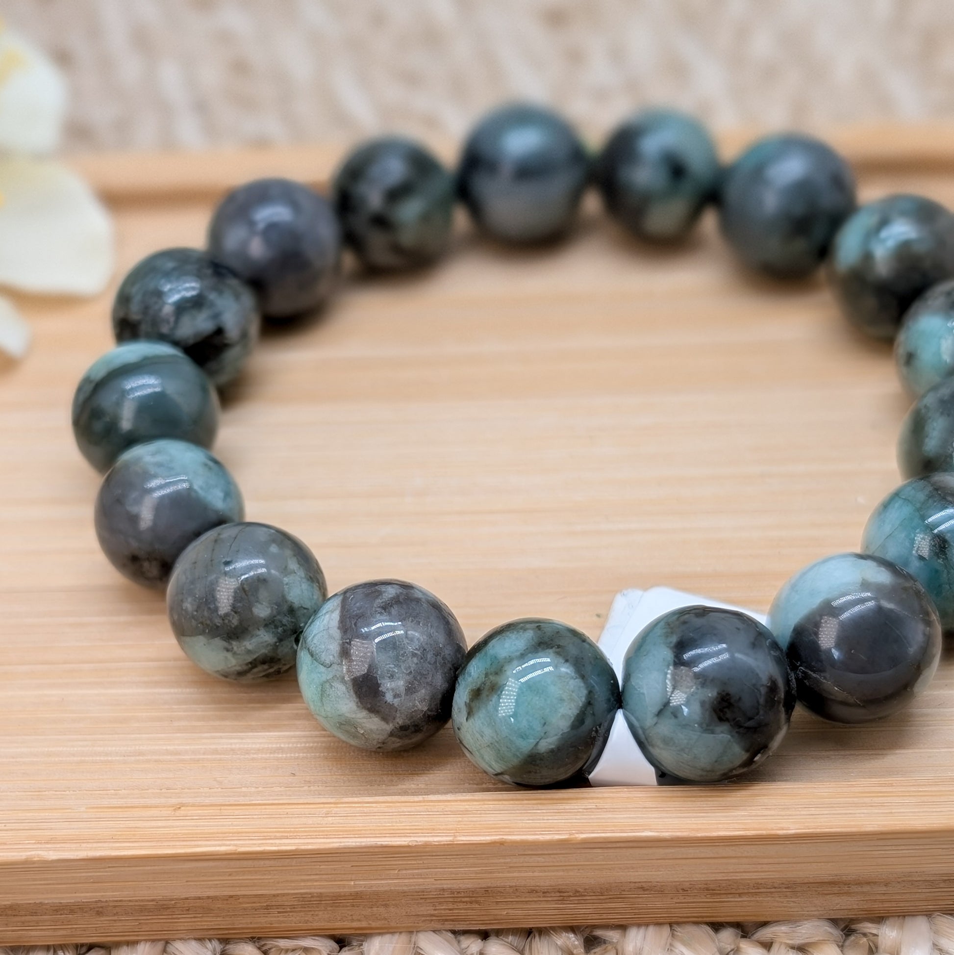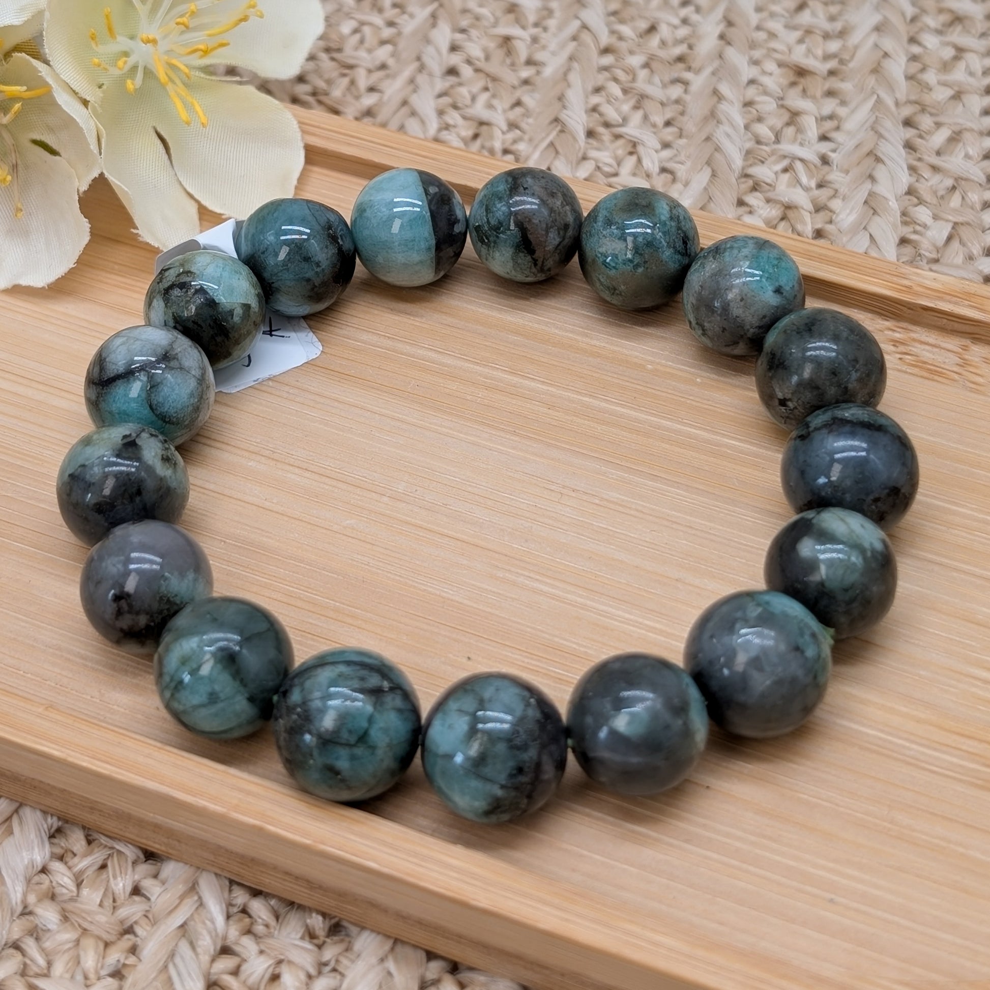 Smaragd Armband mit großen Perlen in schönem Türkismuster.