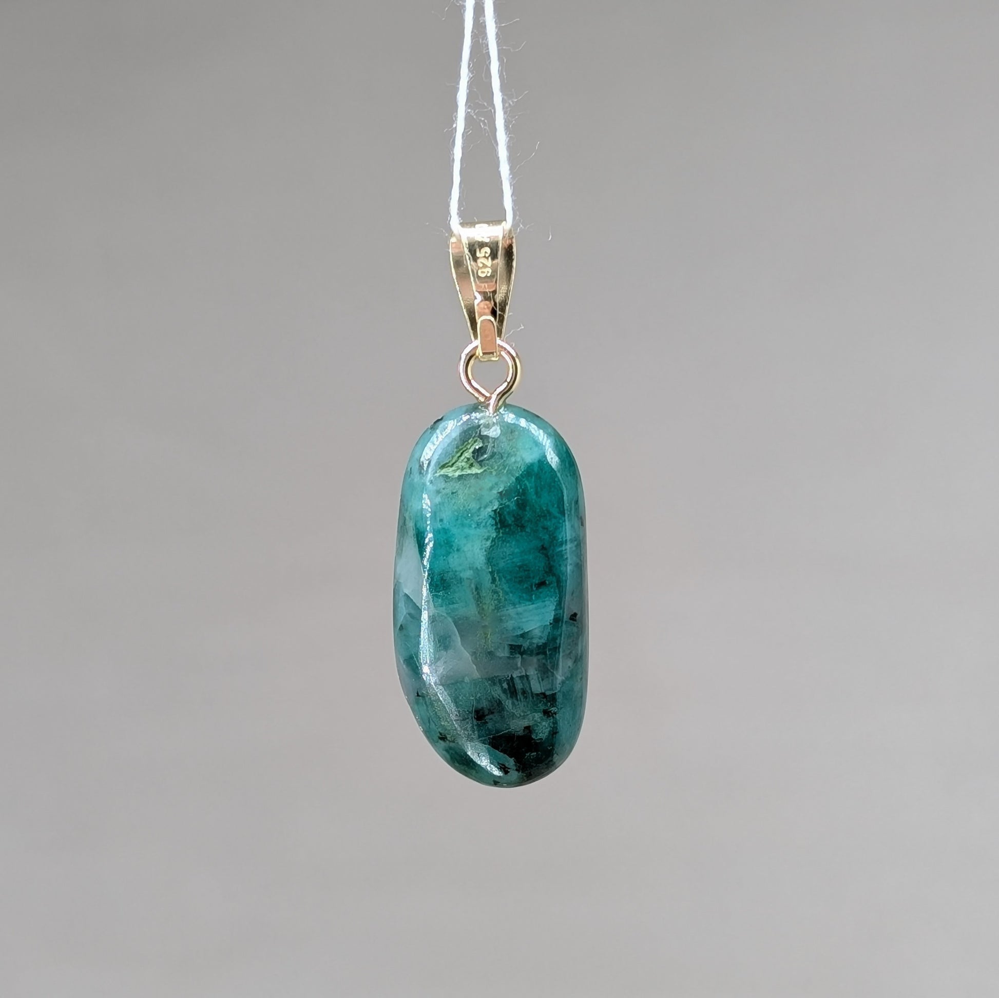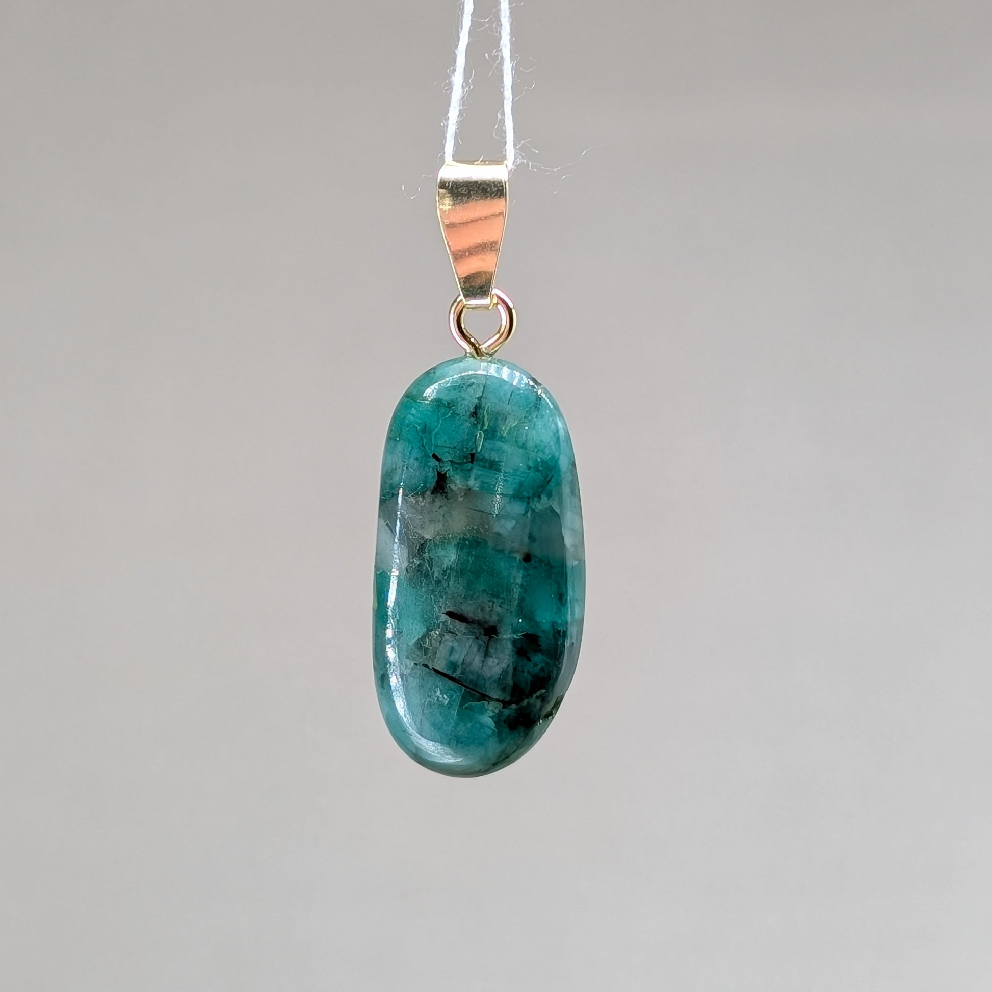 Smaragd Kettenanhänger in schöner organischer Form und intensiver grüner Farbe