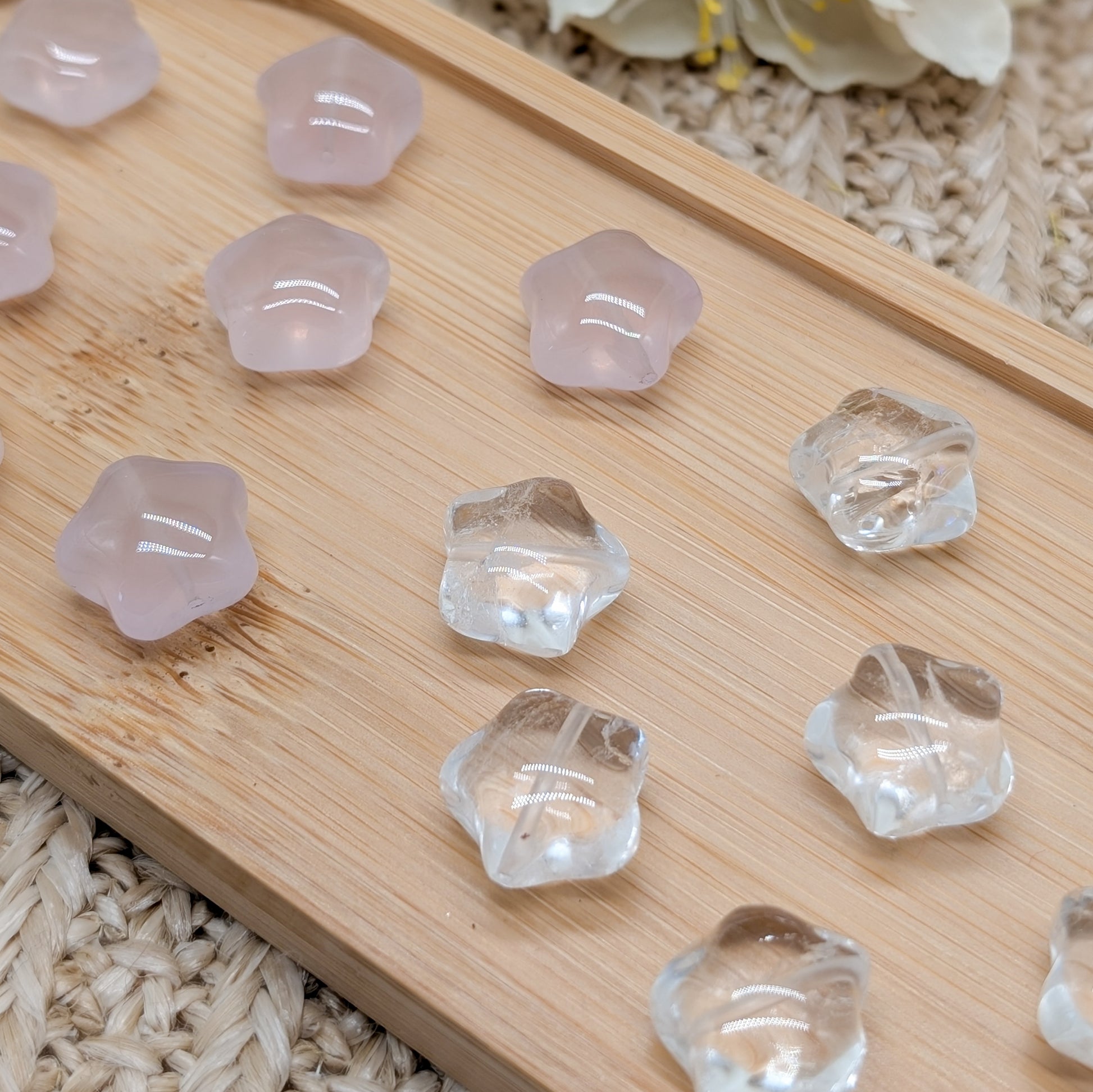 Natürliche Edelstein Perle in Sternform in zwei Varianten: Bergkristall und Rosenquarz