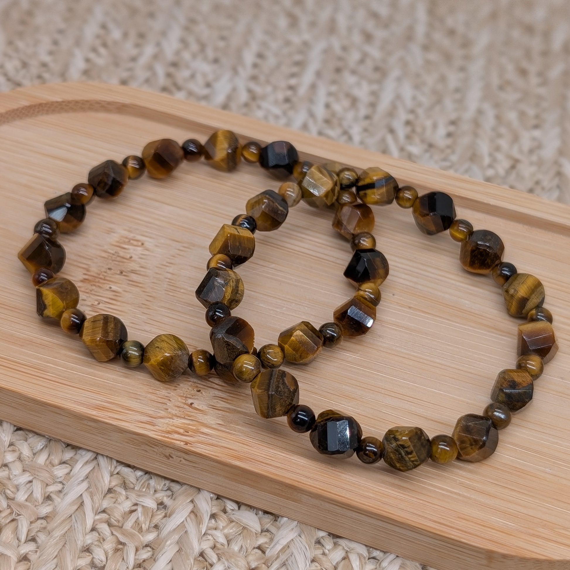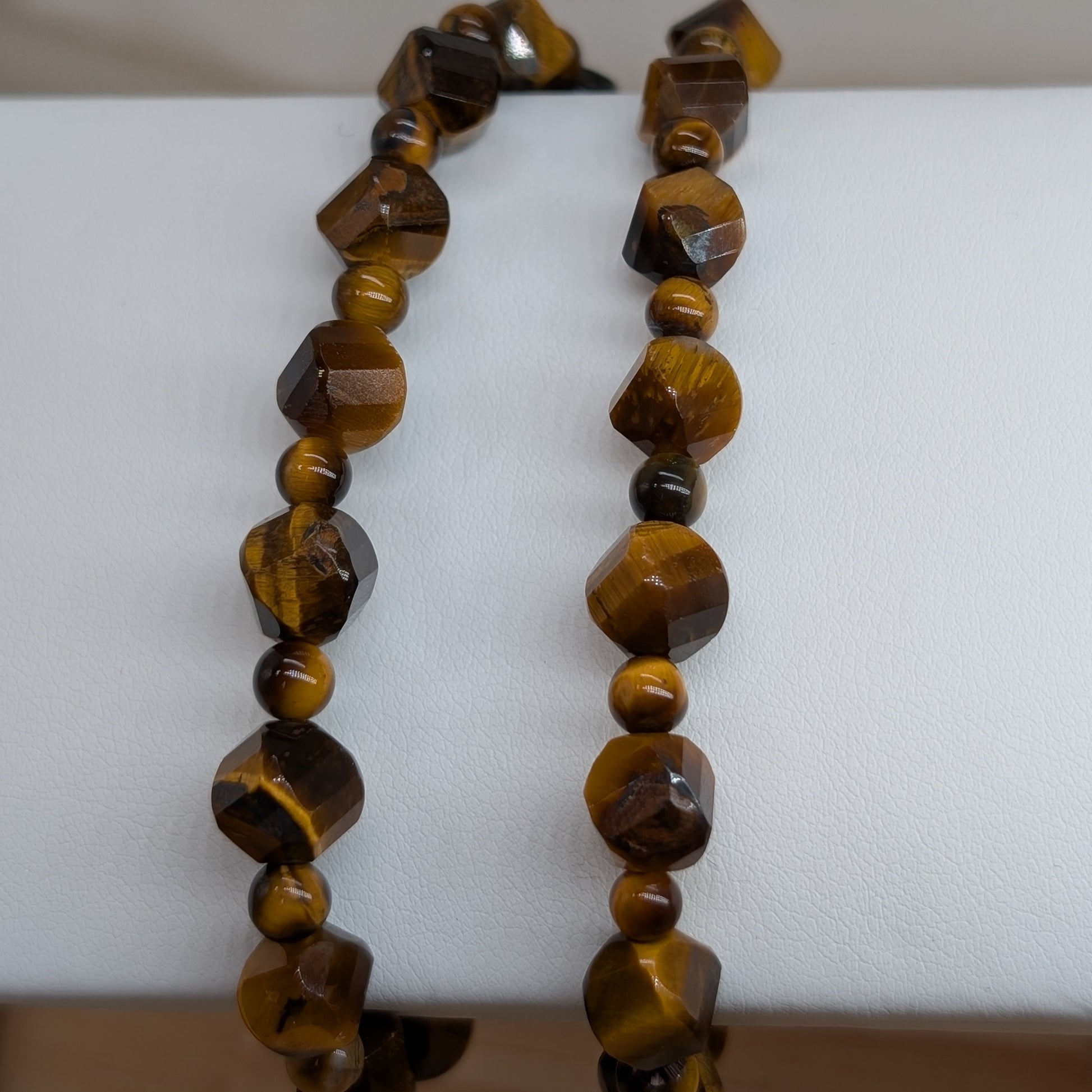 Tigerauge Armband mit facettierten Perlen und Kugeln als Mix.
