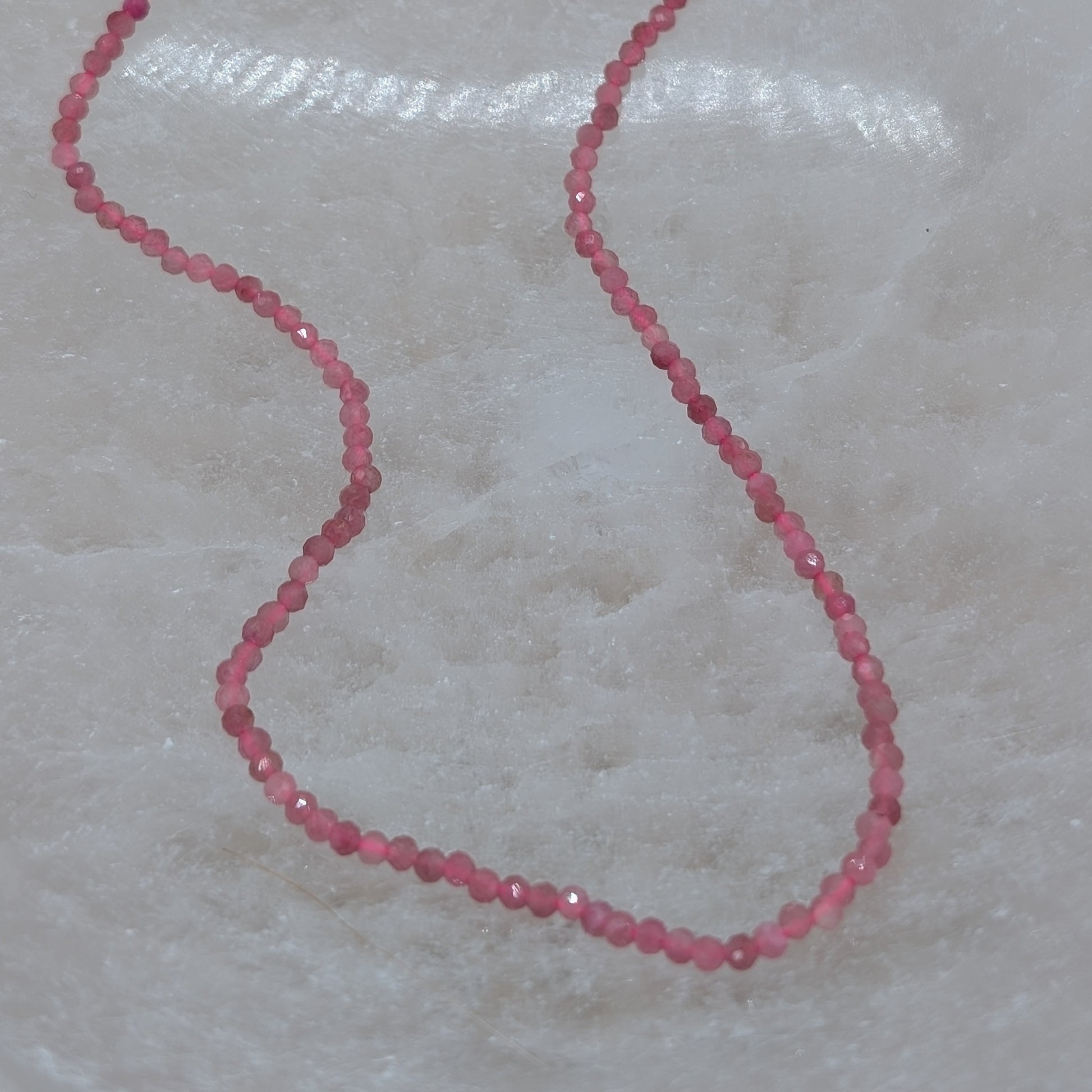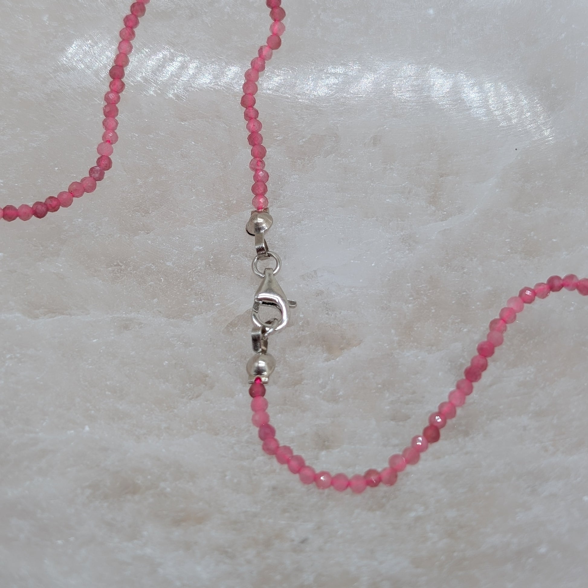 Roter Turmalin Halskette mit facettierten Perlen und Verschluss aus 925er Silber.