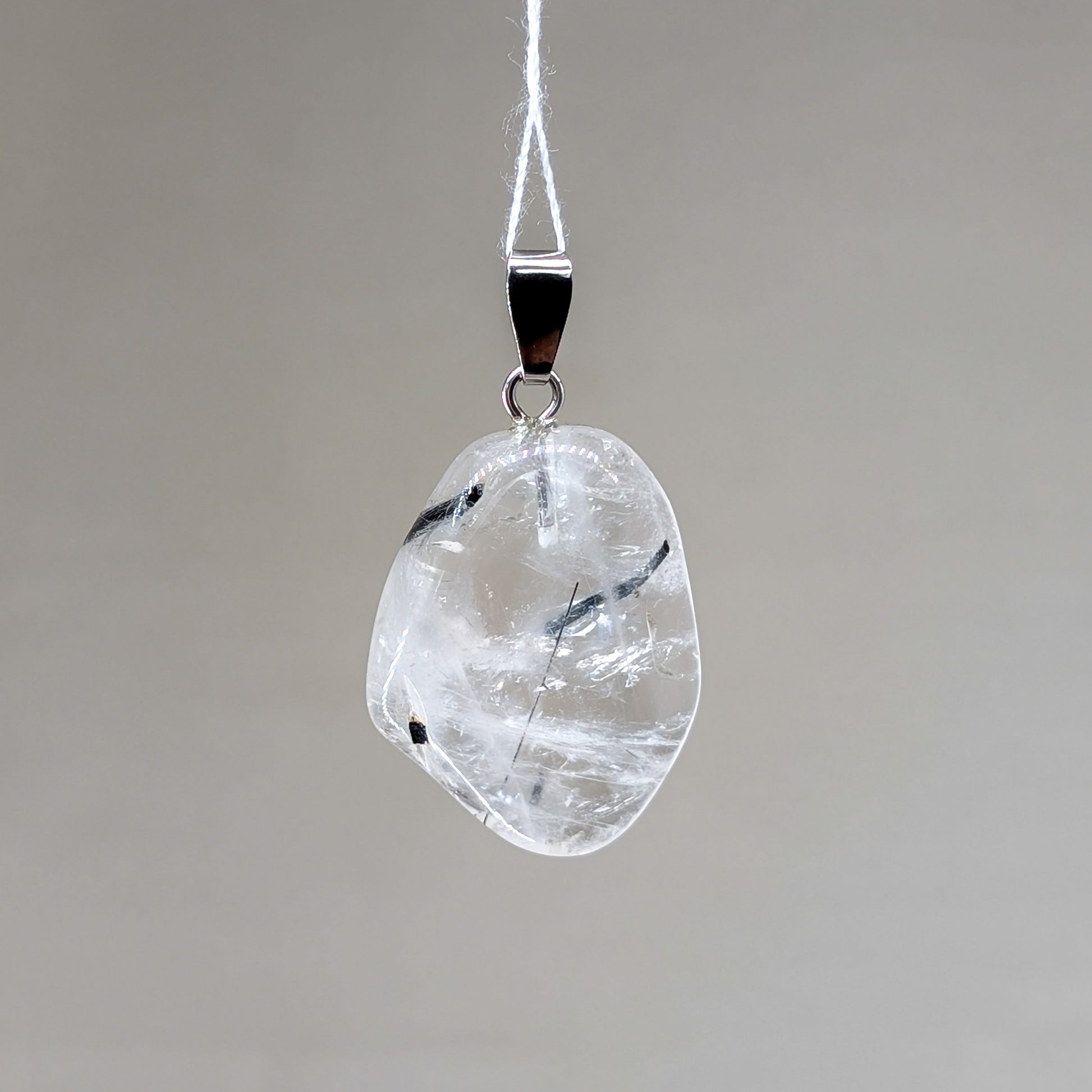 Schimmernder Turmalinquarz Kettenanhänger in klarer Qualität mit Öse aus 925er Silber.