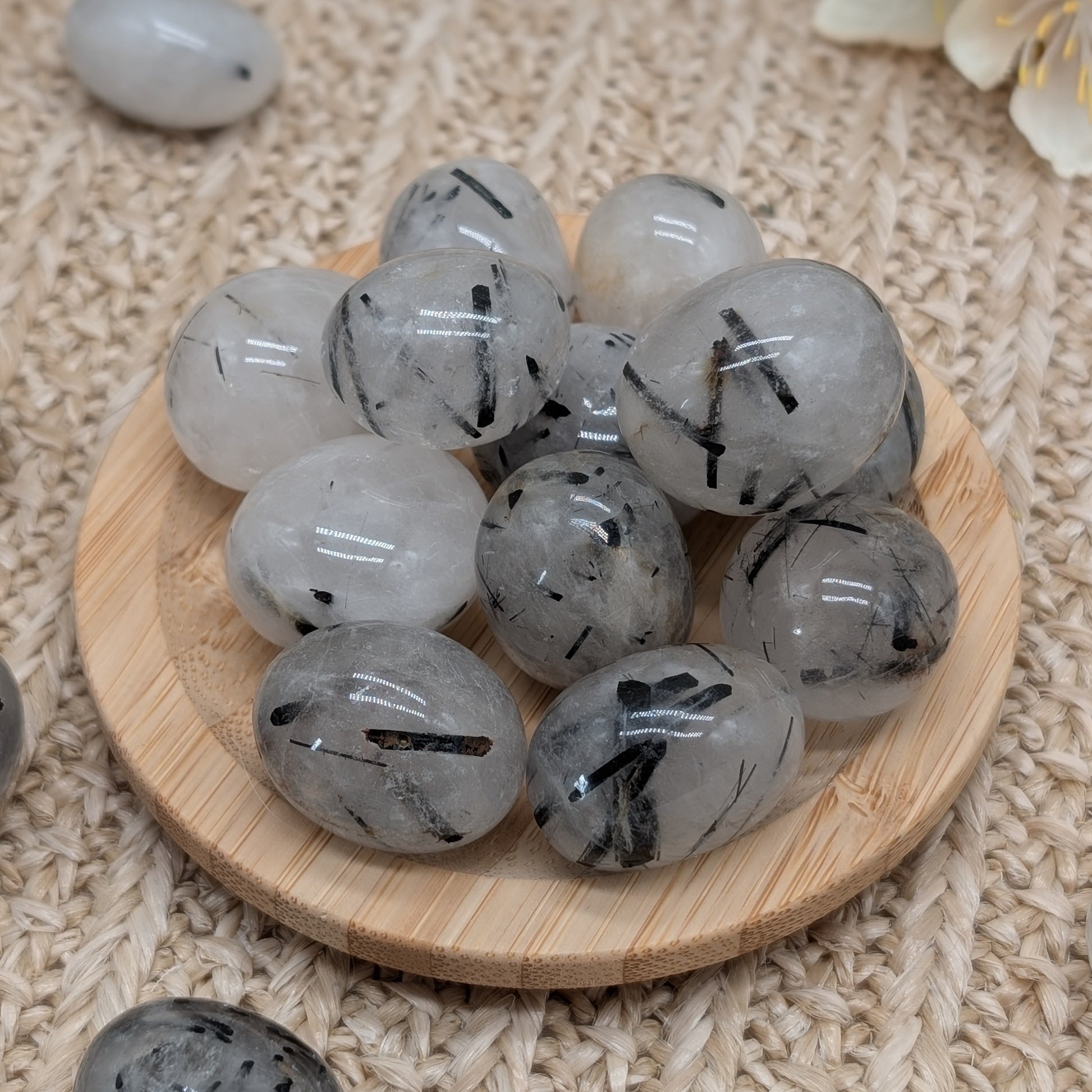 Turmalinquarz Trommelstein / schwarzer Turmalin in Quarz
