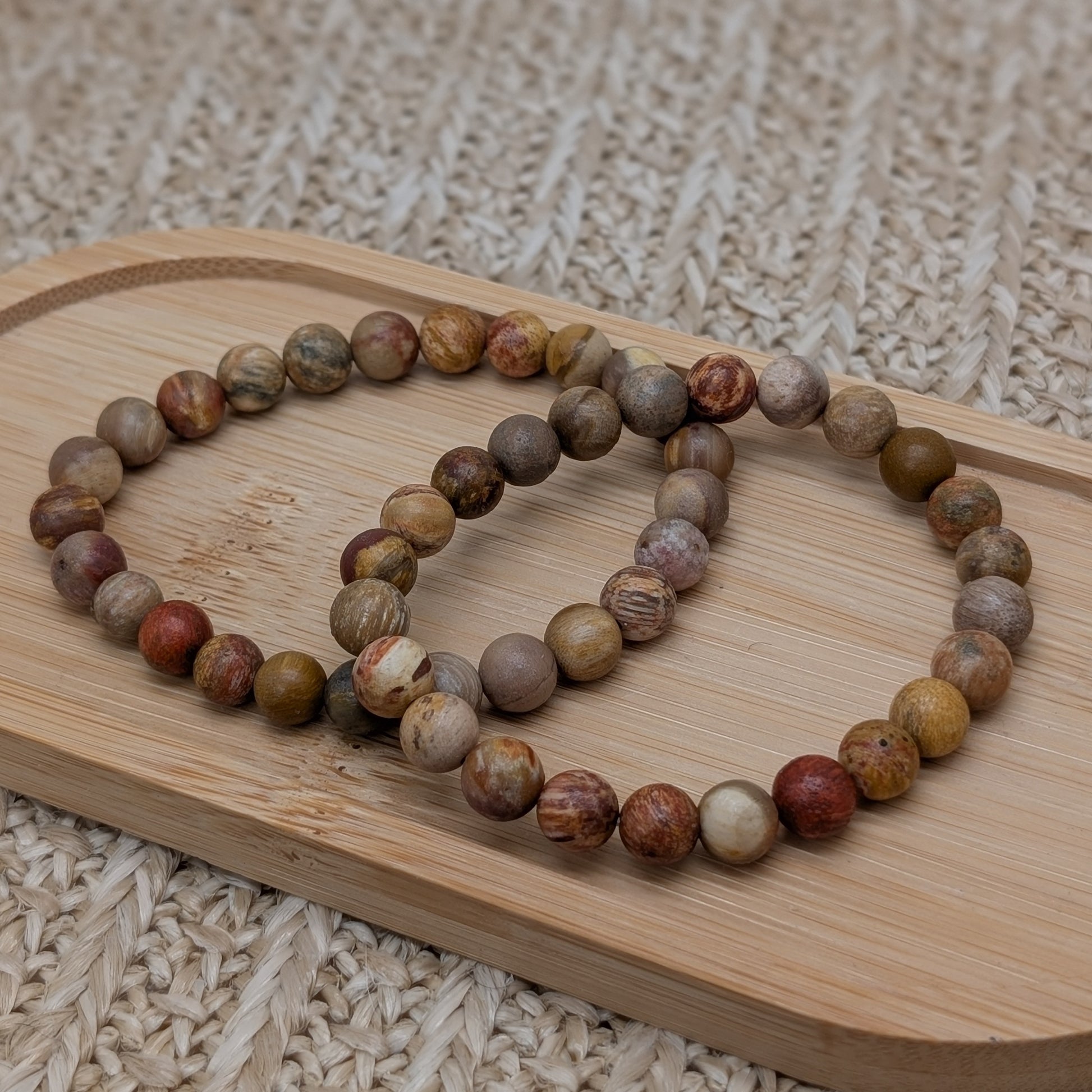 Versteinertes Holz Armband in schönen Erdtönen von Beige bis Braun.