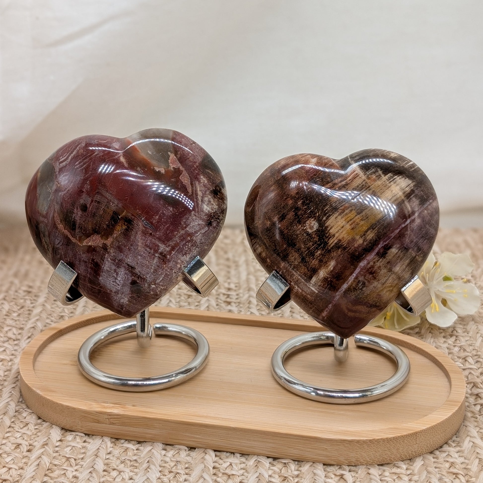 Ein Herz aus versteinertem Holz ❤️🪵 mit schönem Muster in rot/braun in zwei Varianten: