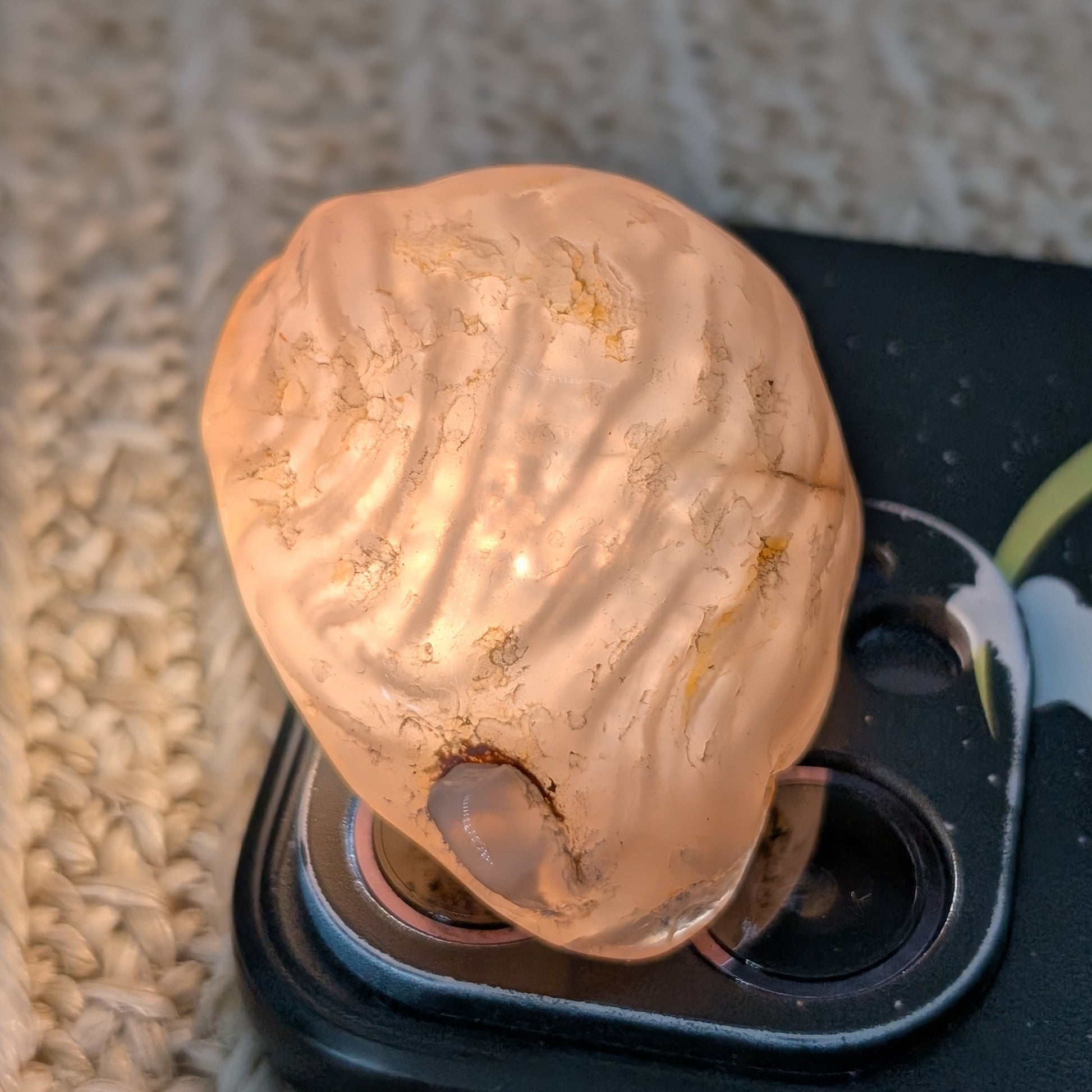 Das Wasser lässt sich gut sehen, wenn man die Achatgeode gegen das Licht hält oder durchleuchtet.